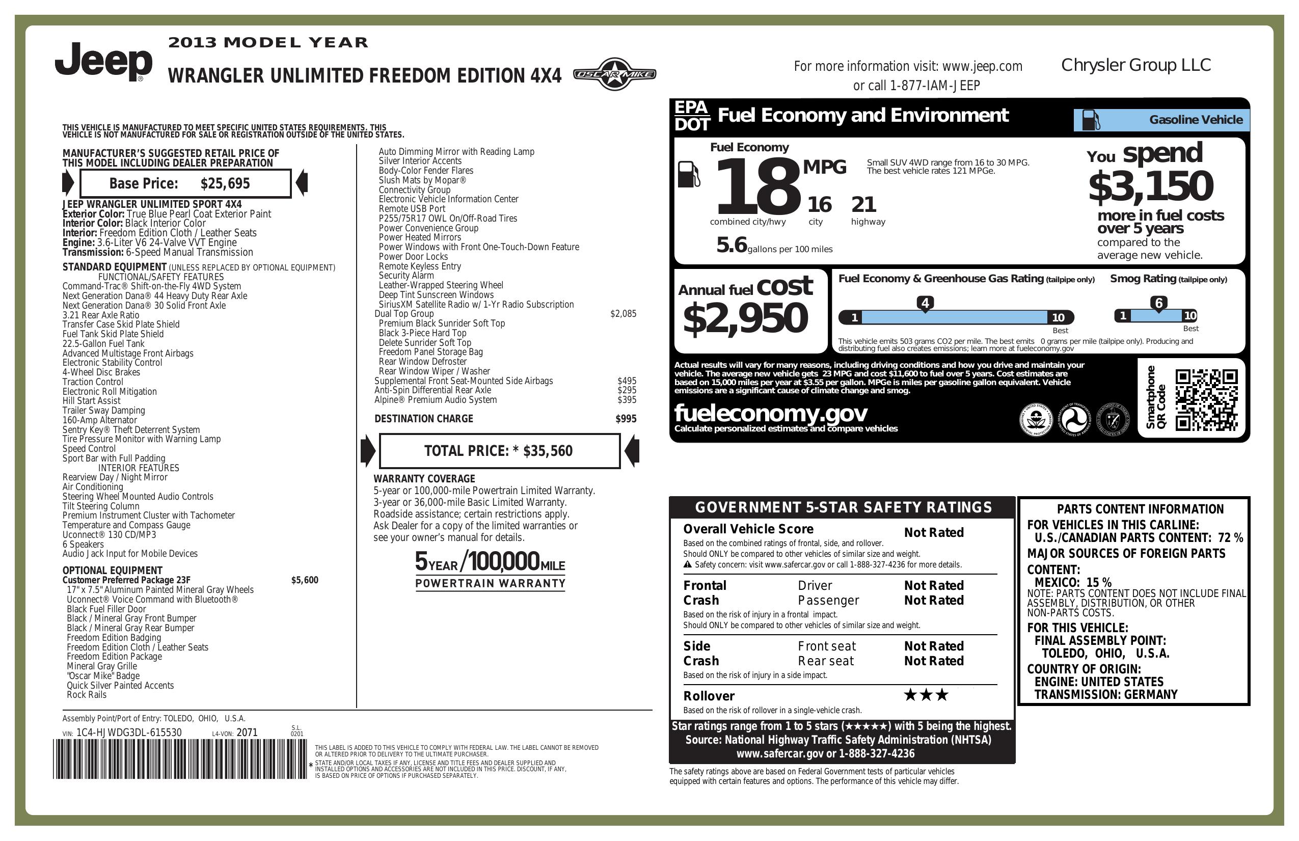 2013 Jeep Wrangler Unlimited 4 Wd 4dr Freedom Edition *Ltd Avail*