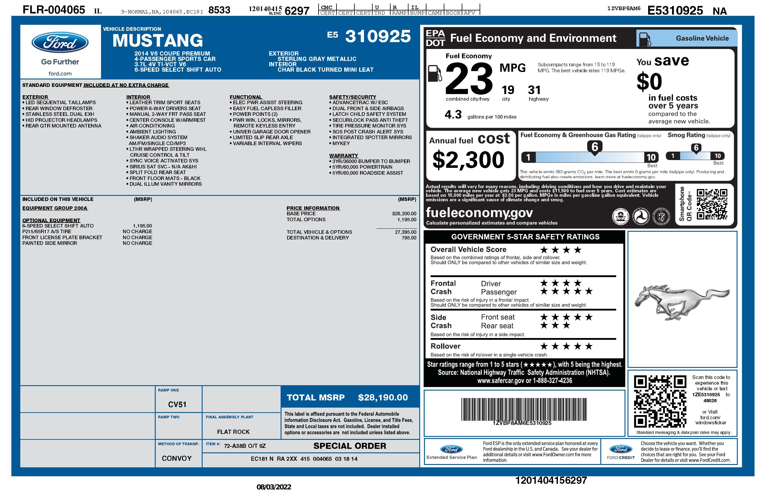 2014 Ford Mustang V6