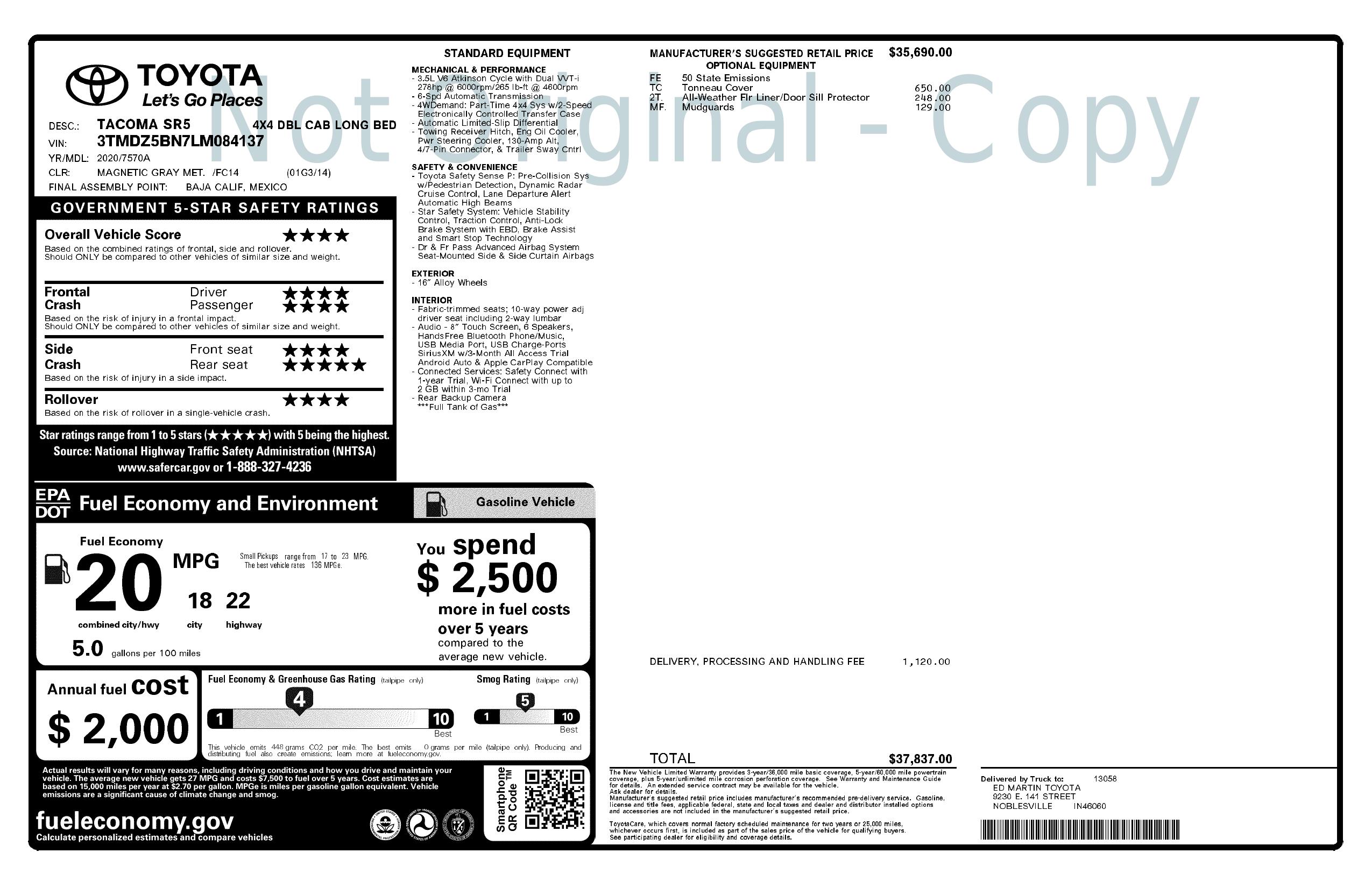 2020 Toyota Tacoma 4 Wd Sr5