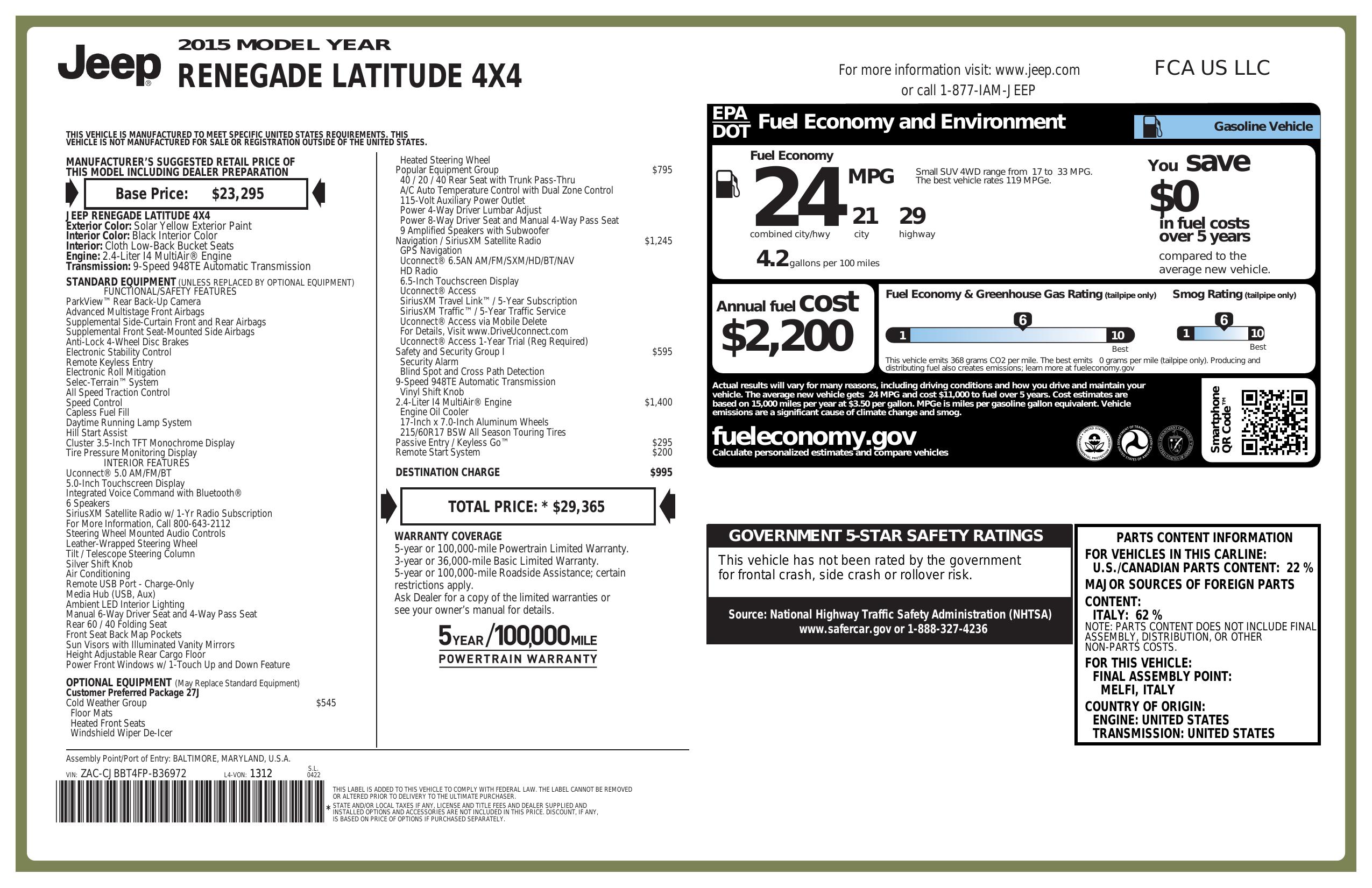2015 Jeep Renegade 4 Wd 4dr Latitude