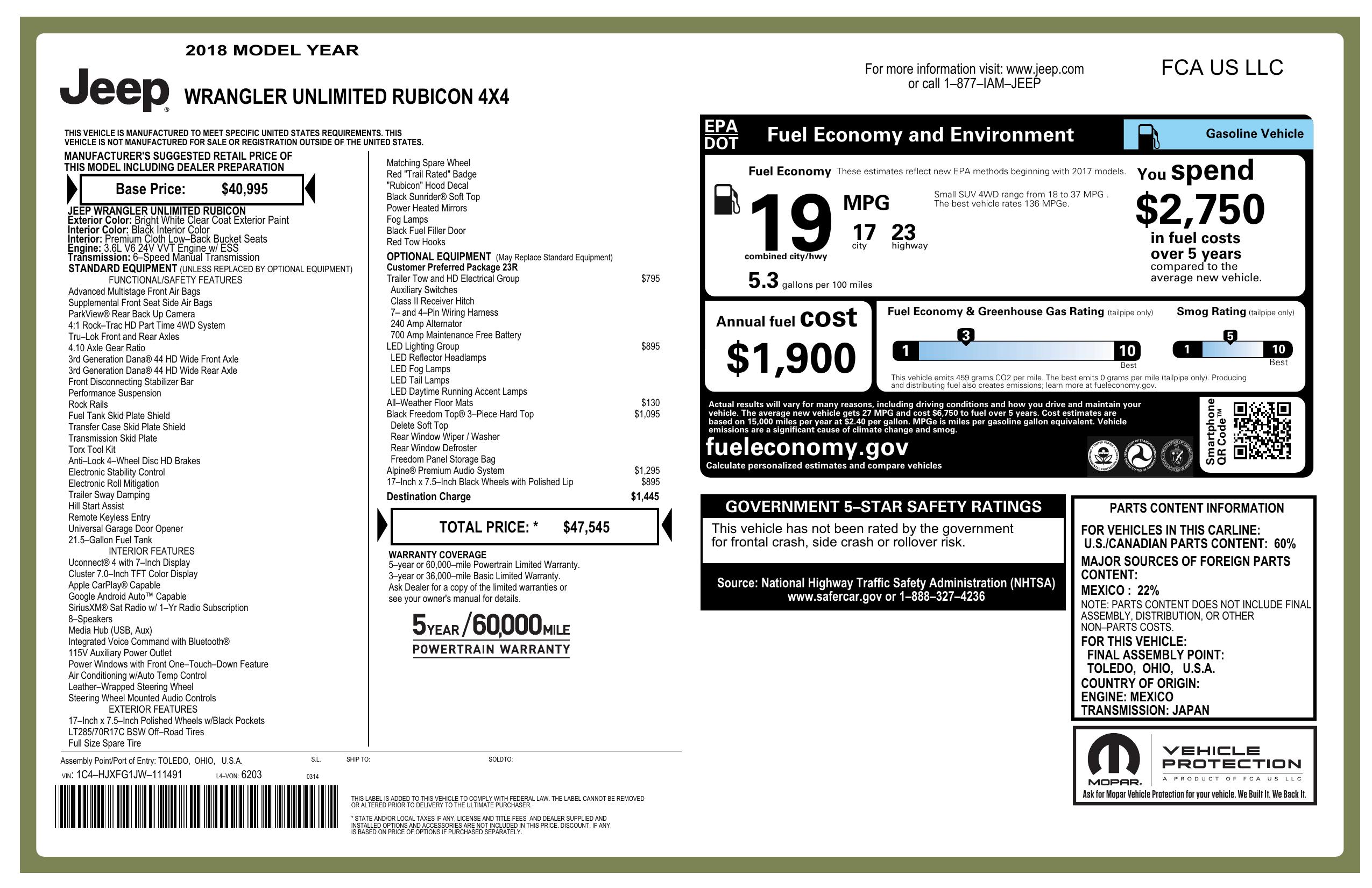 2018 Jeep Wrangler Unlimited Rubicon 4x4