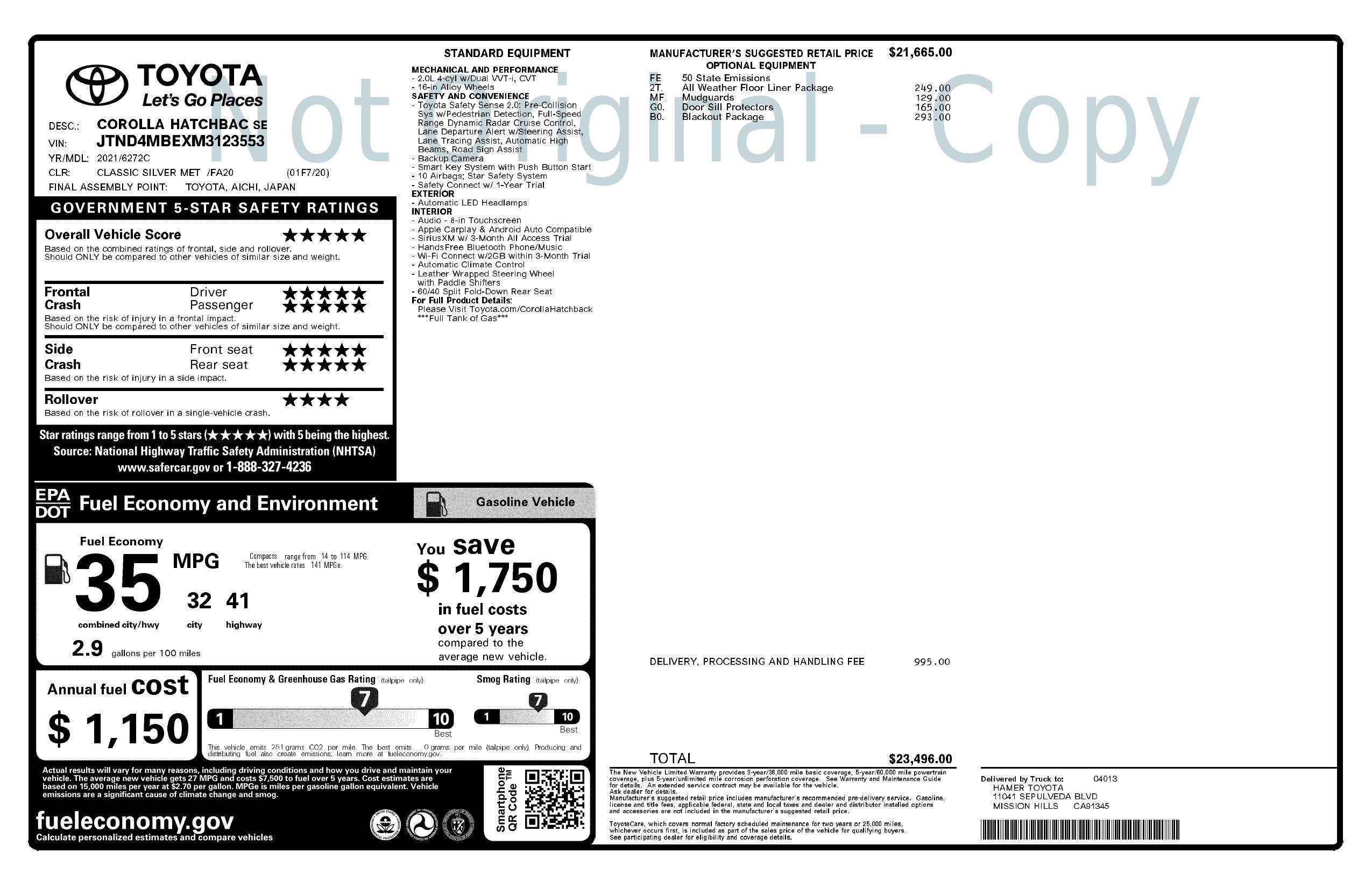 2021 Toyota Corolla Hatchback Cvt (Natl)