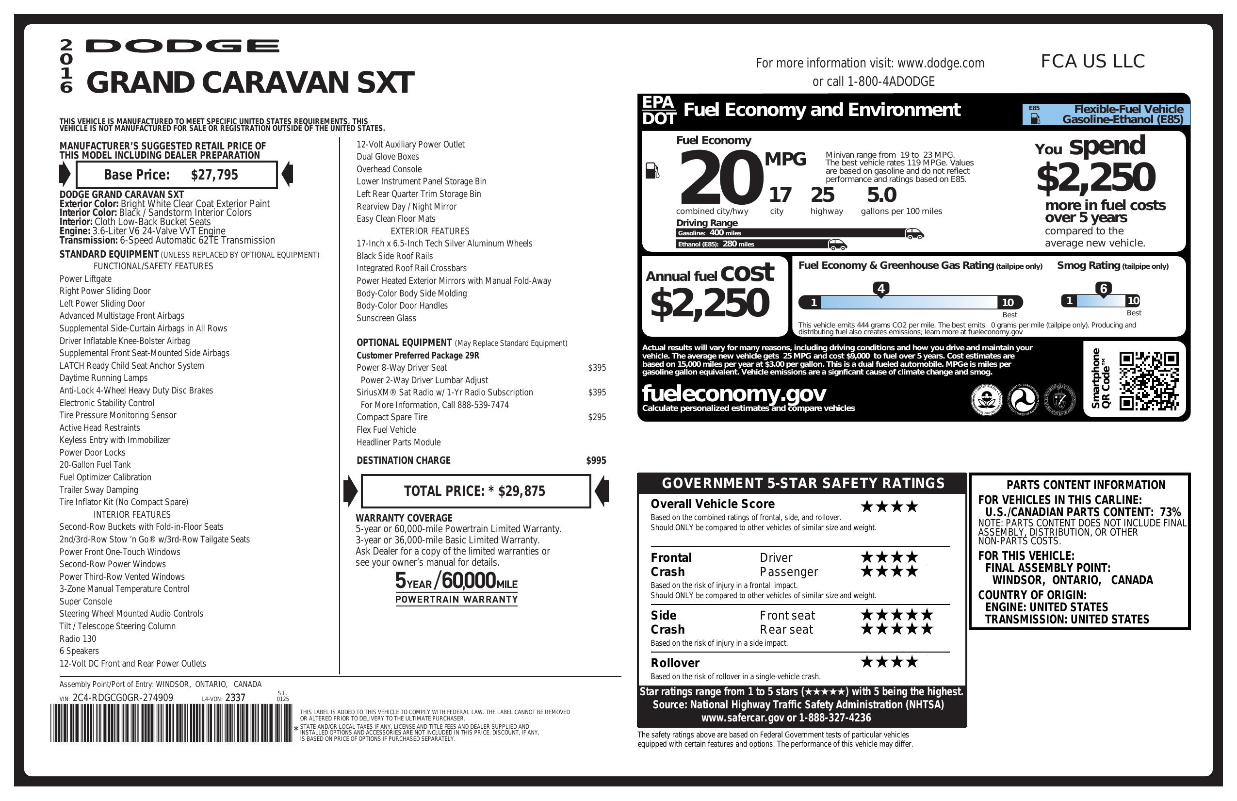 2016 Dodge Grand Caravan 4dr Wgn Sxt