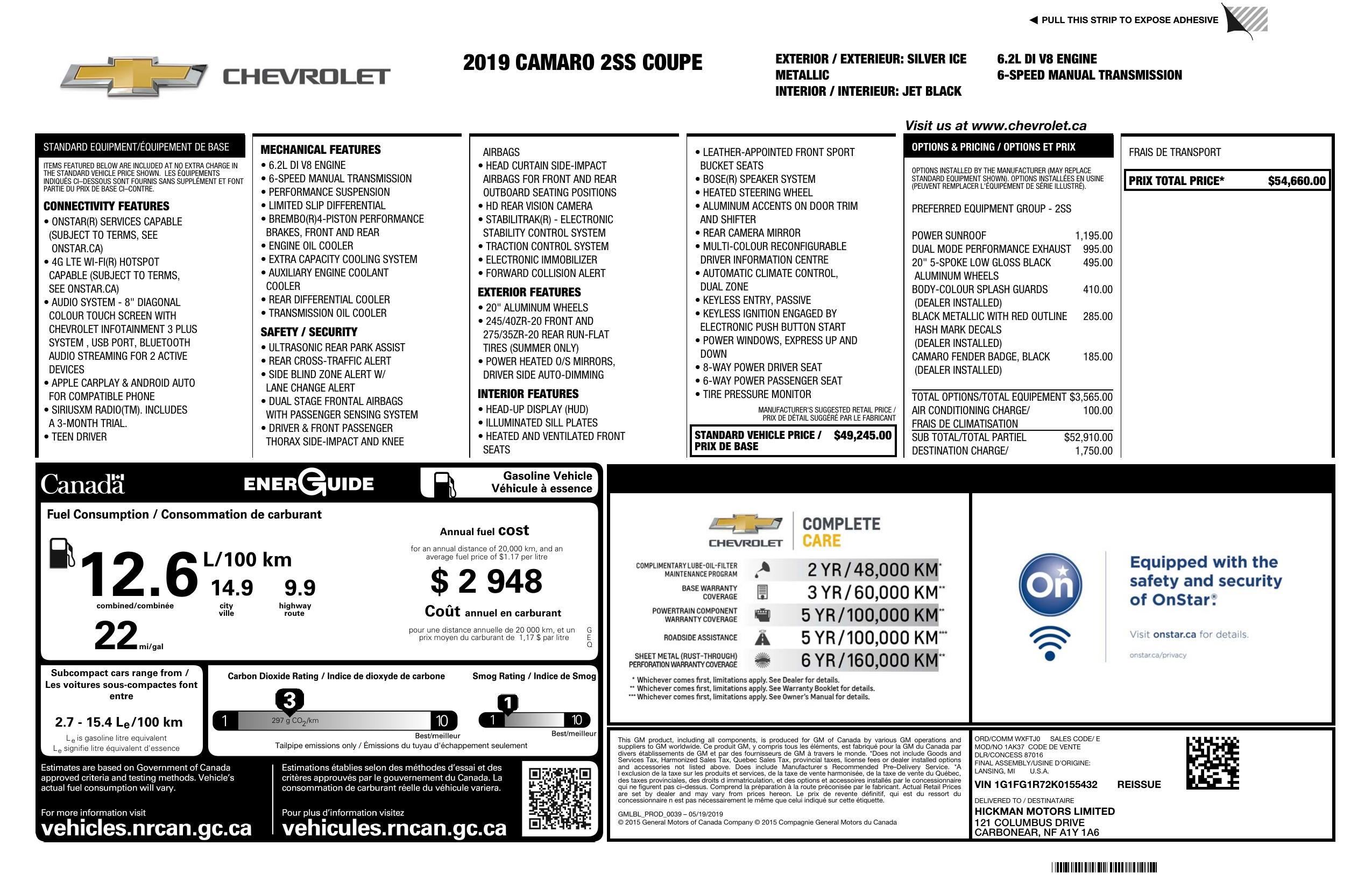 2019 Chevrolet Camaro 2dr Cpe 2 Ss