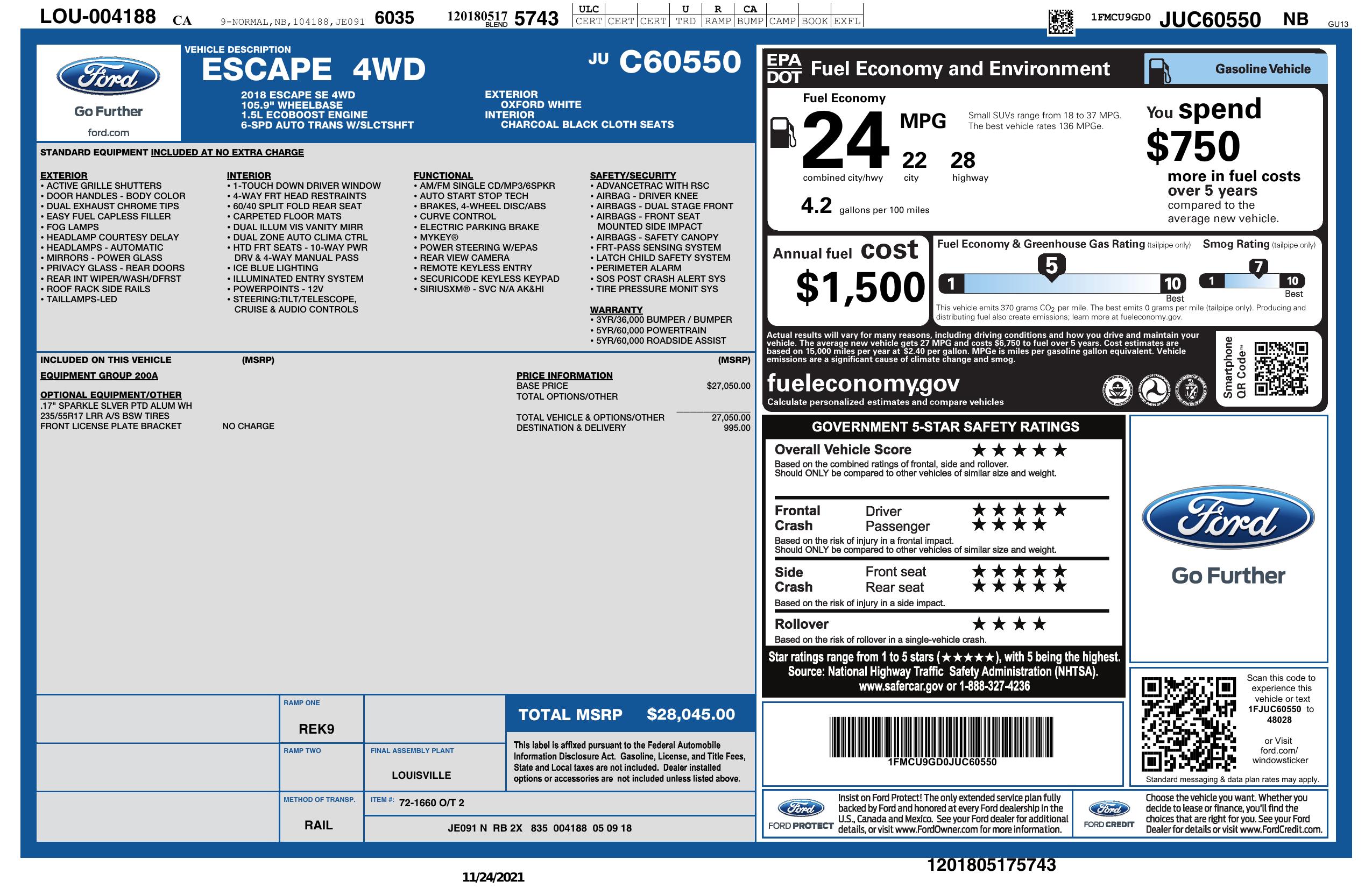 2018 Ford Escape Se 4 Wd
