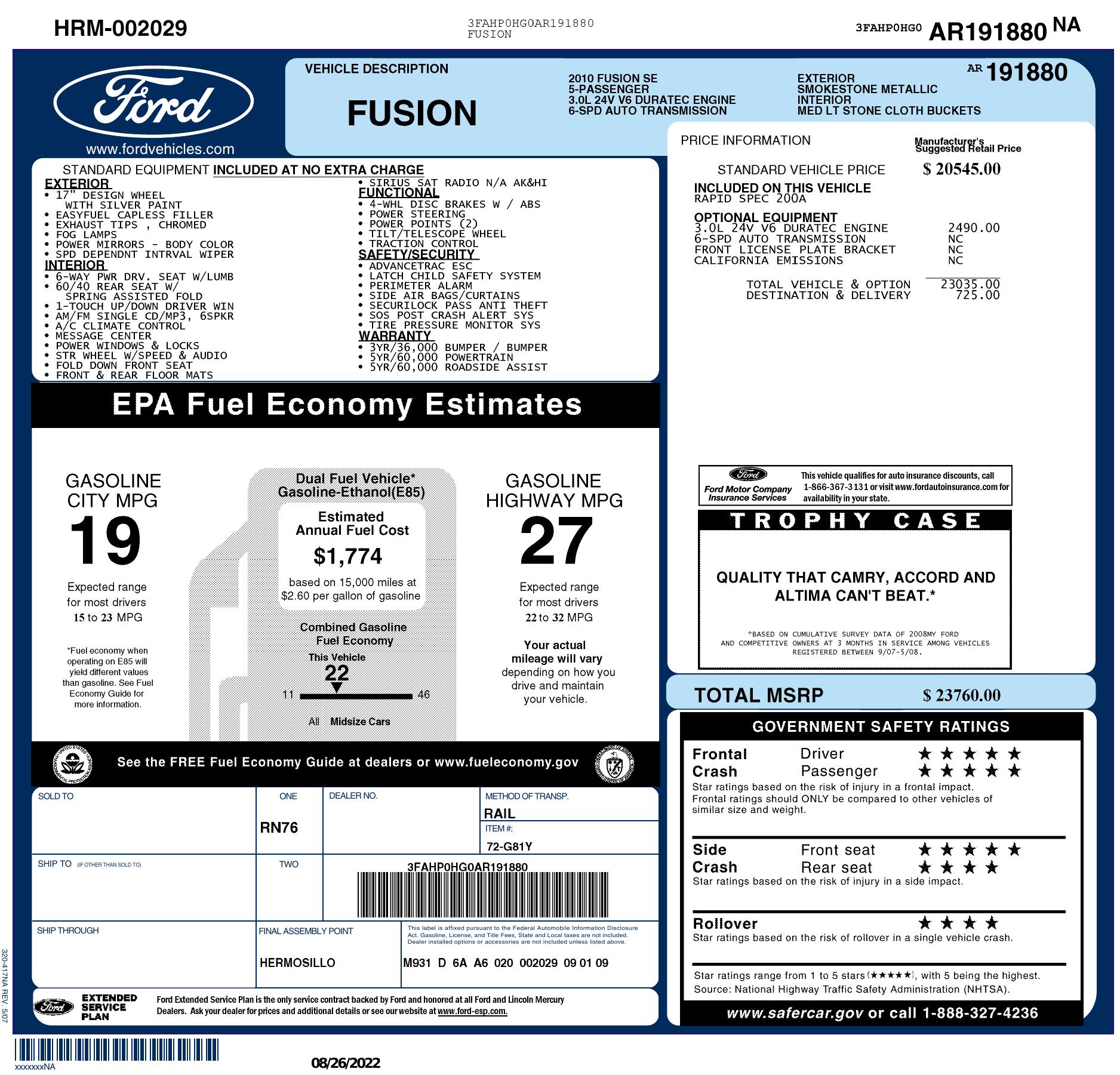 2010 Ford Fusion 4dr Sdn Se Fwd