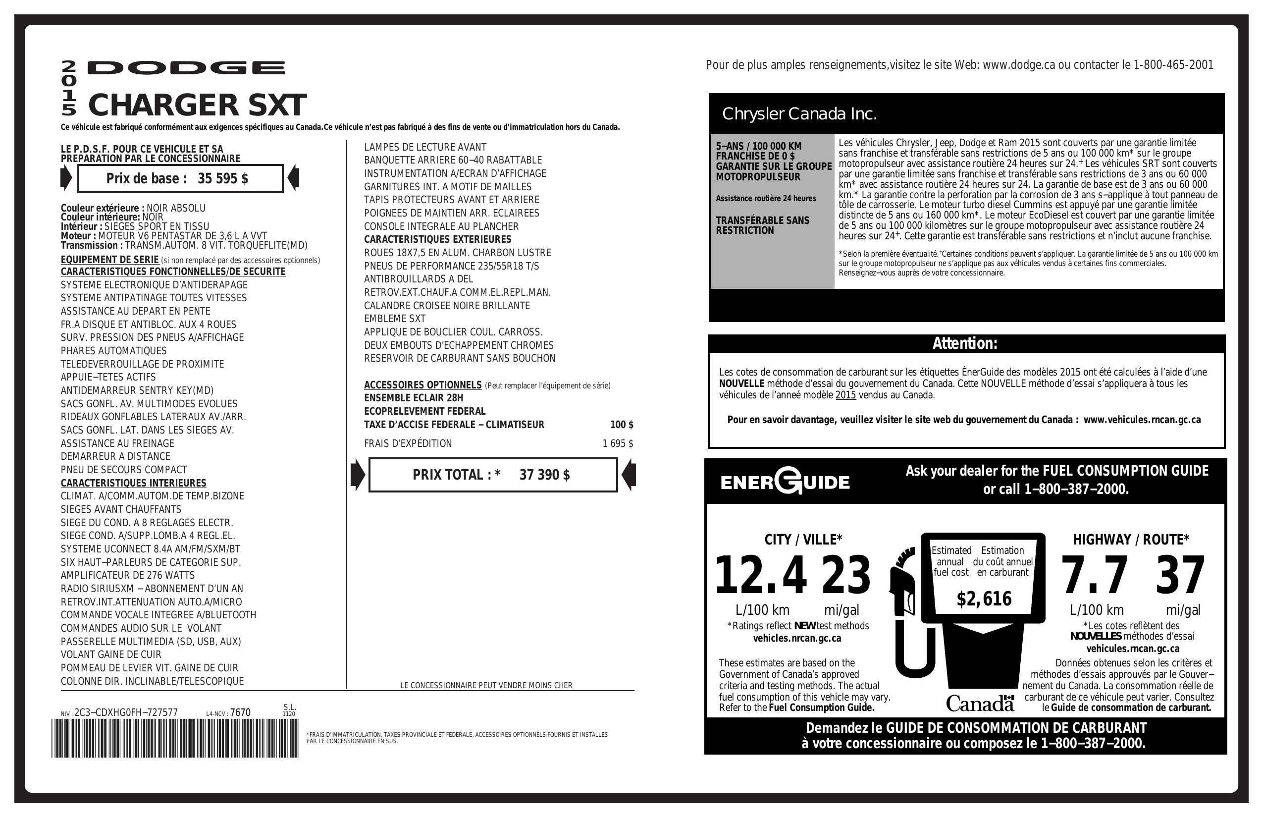 2015 Dodge Charger 4dr Sdn Sxt Rwd