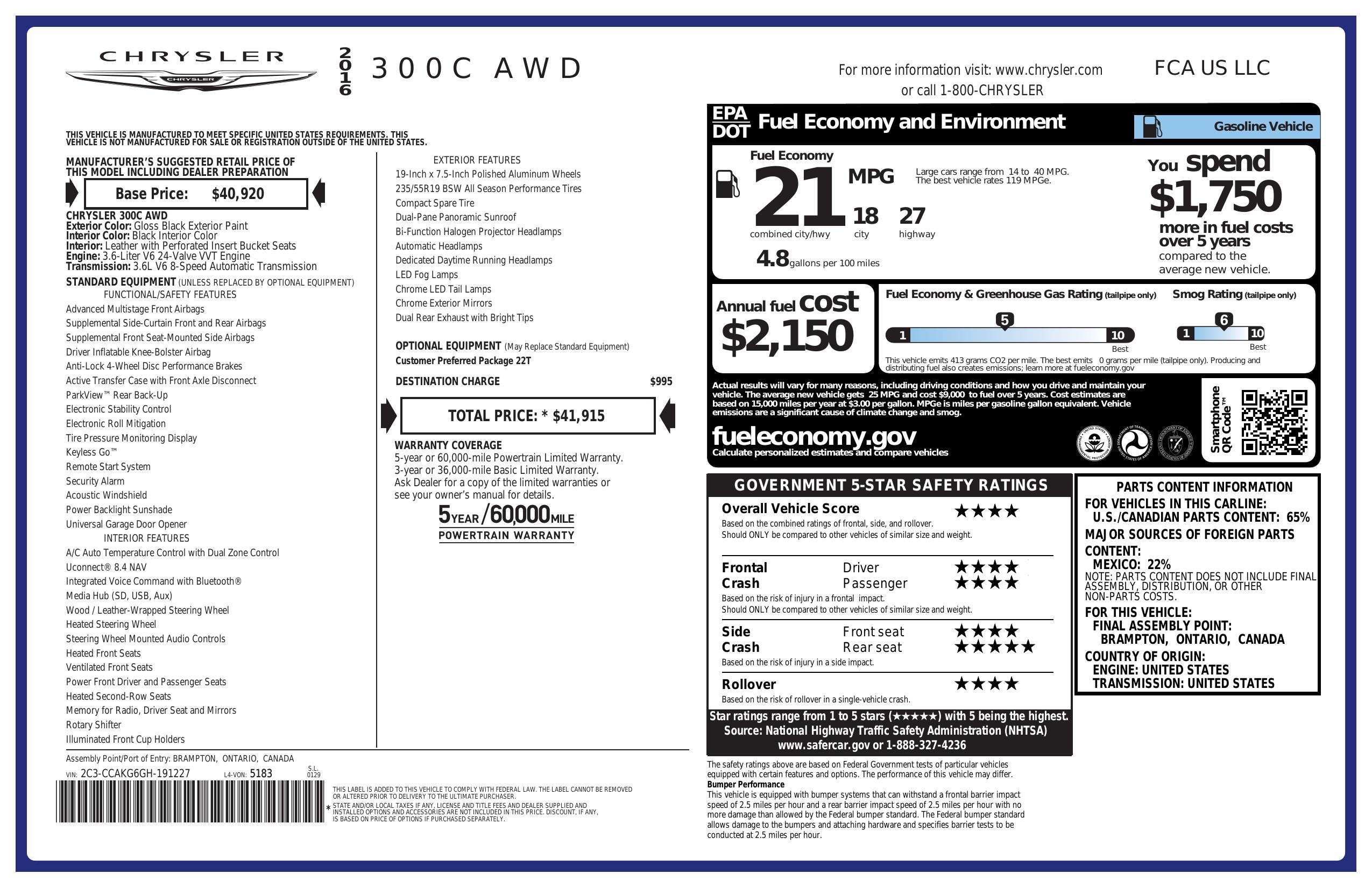 2016 Chrysler 300 4dr Sdn 300 C Awd