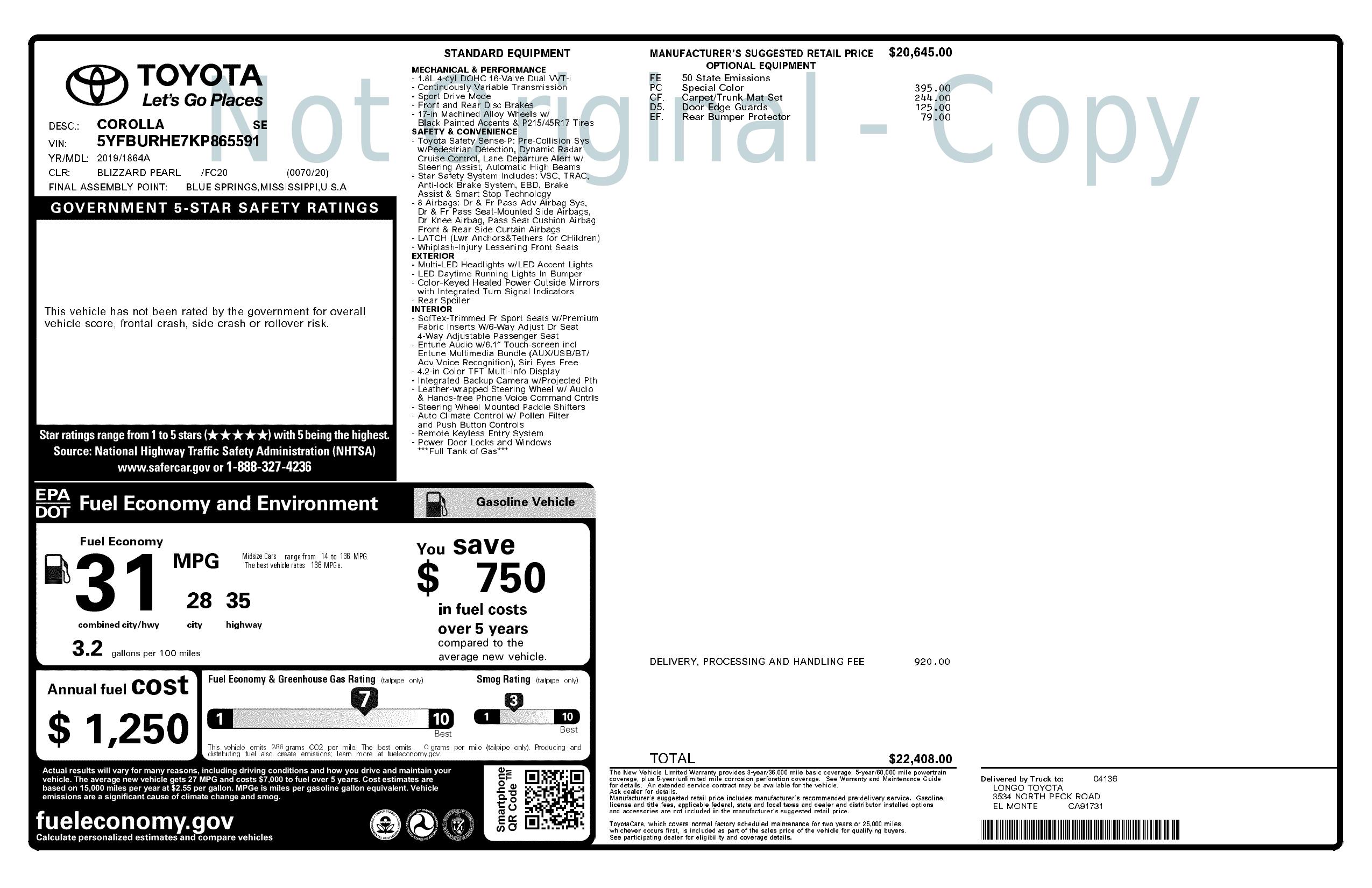 2019 Toyota Corolla (Natl)