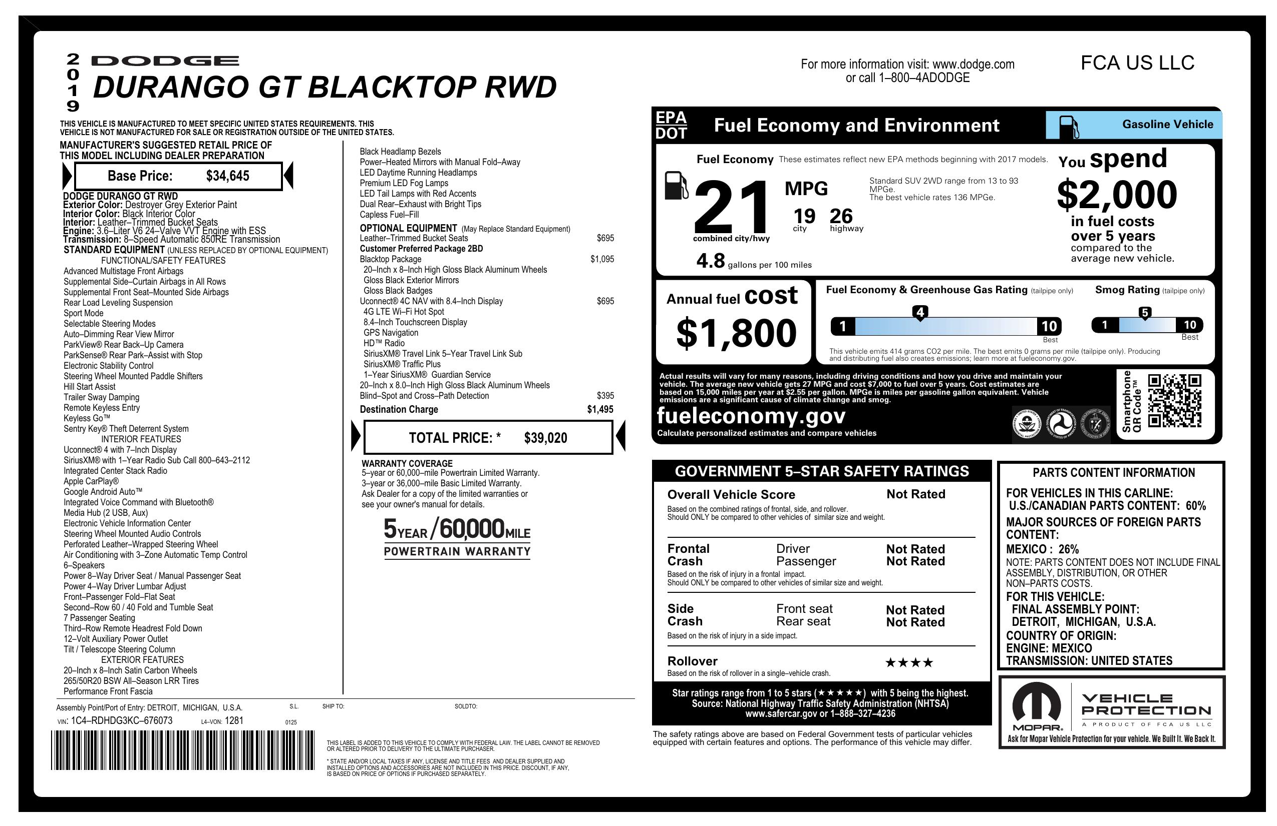 2019 Dodge Durango Gt Rwd