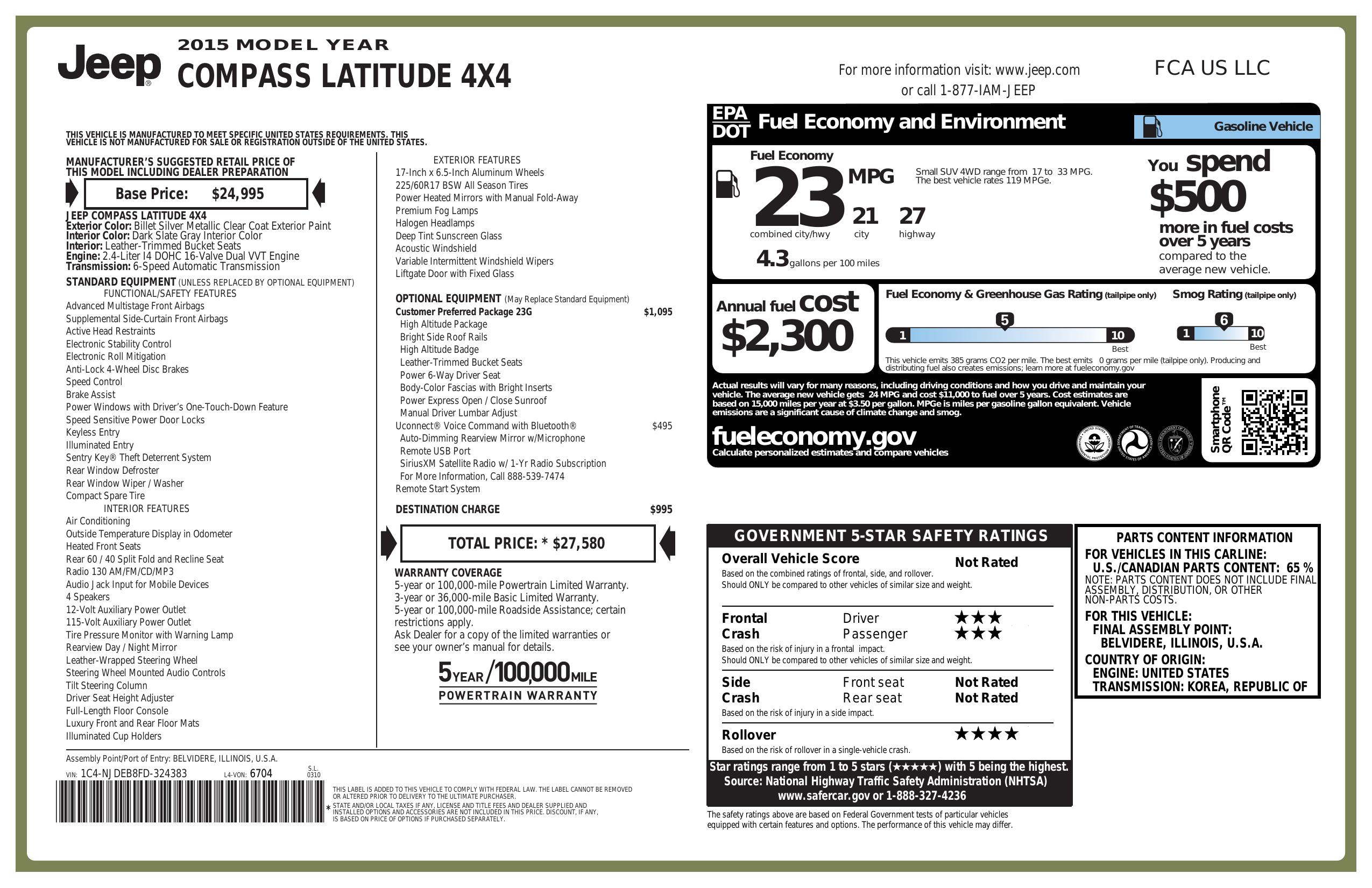 2015 Jeep Compass 4 Wd 4dr High Altitude Edition