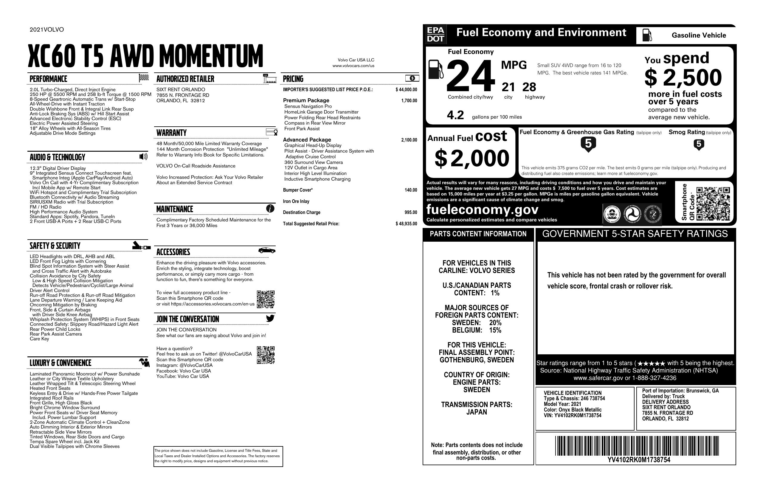 2021 Volvo Xc60 T5 Awd Momentum