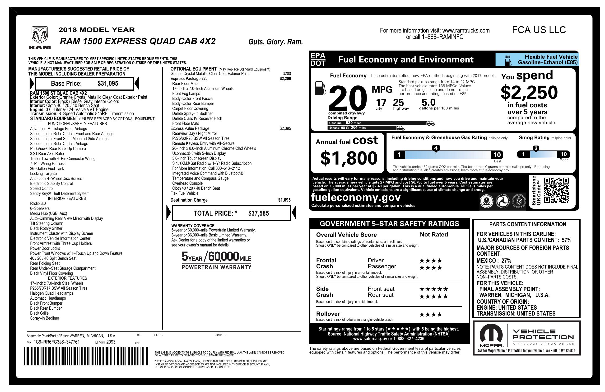 2018 Ram 1500 Express 4x2 Quad Cab 6'4" Box