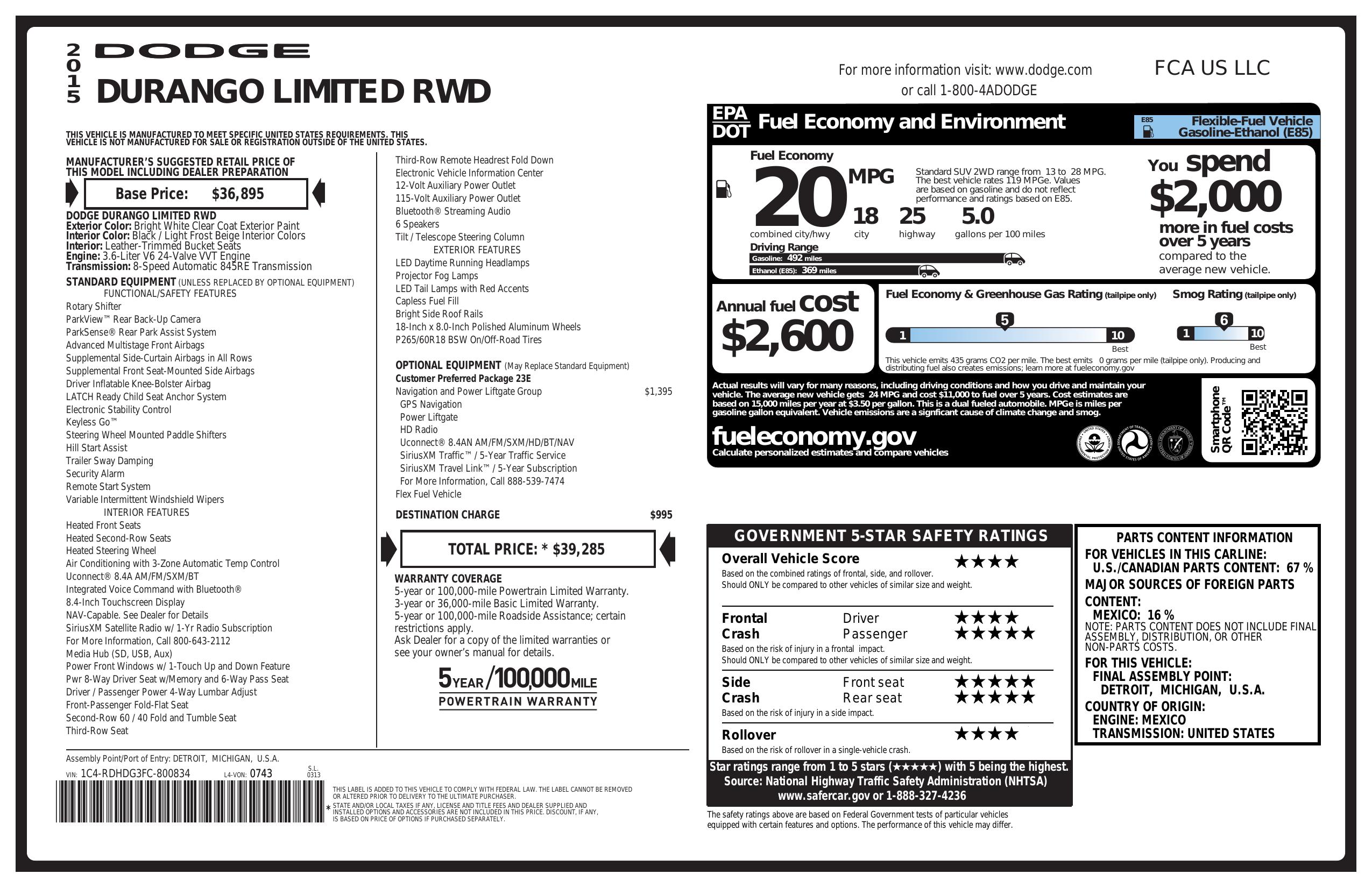 2015 Dodge Durango 2 Wd 4dr Limited
