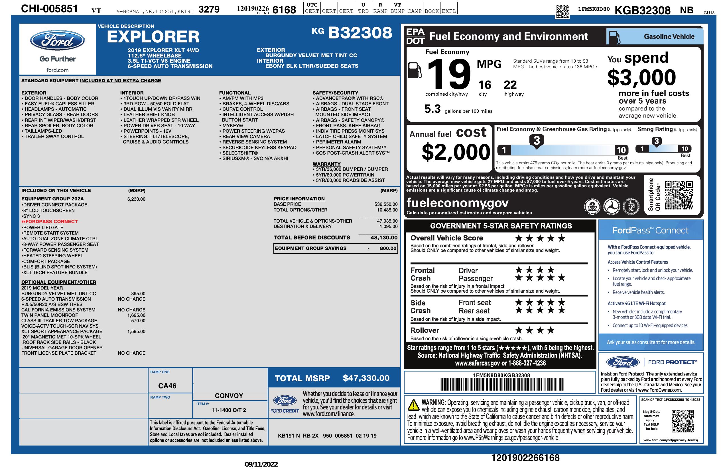 2019 Ford Explorer Xlt 4 Wd