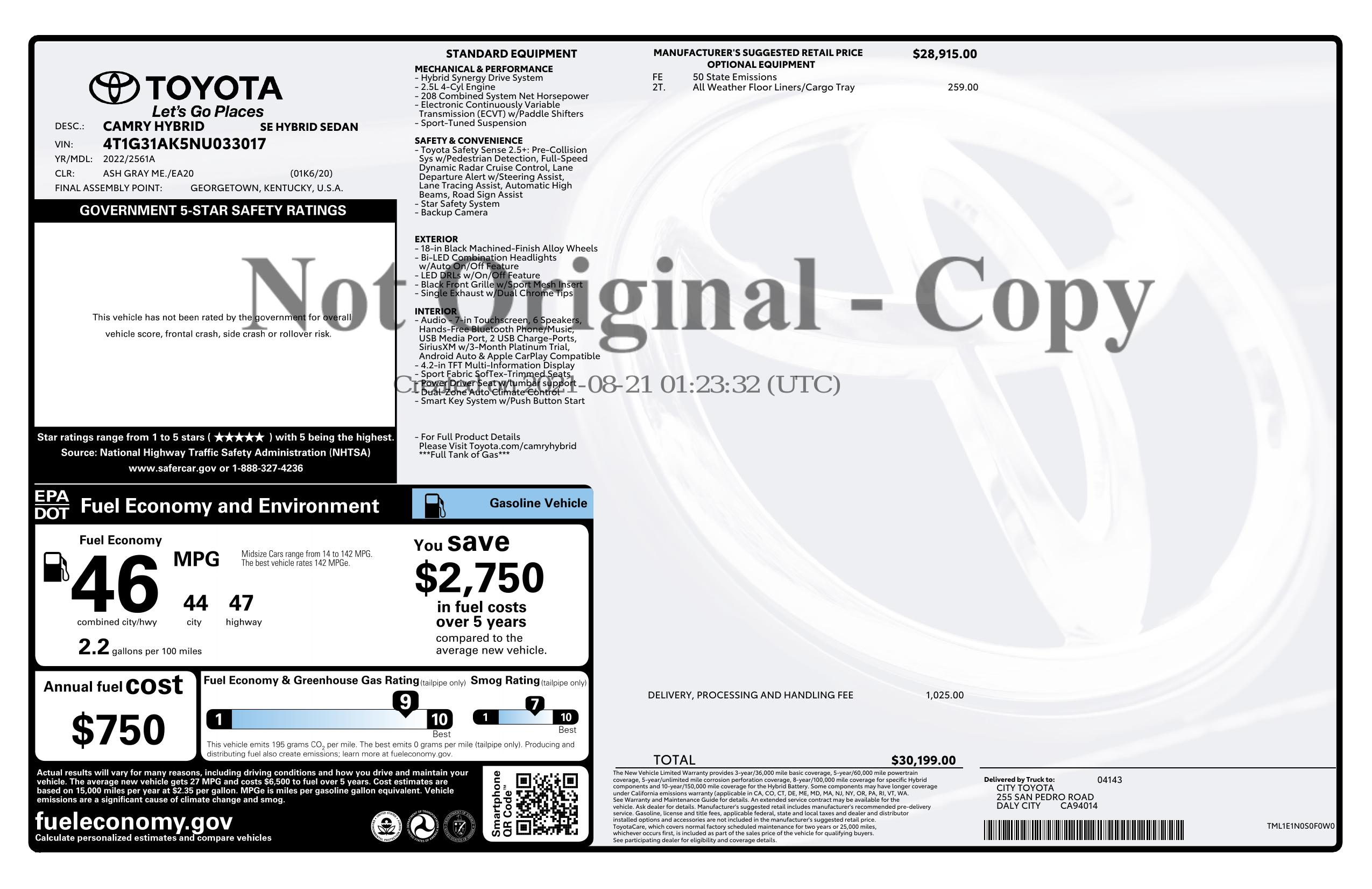 2022 Toyota Camry Hybrid Cvt (Natl)