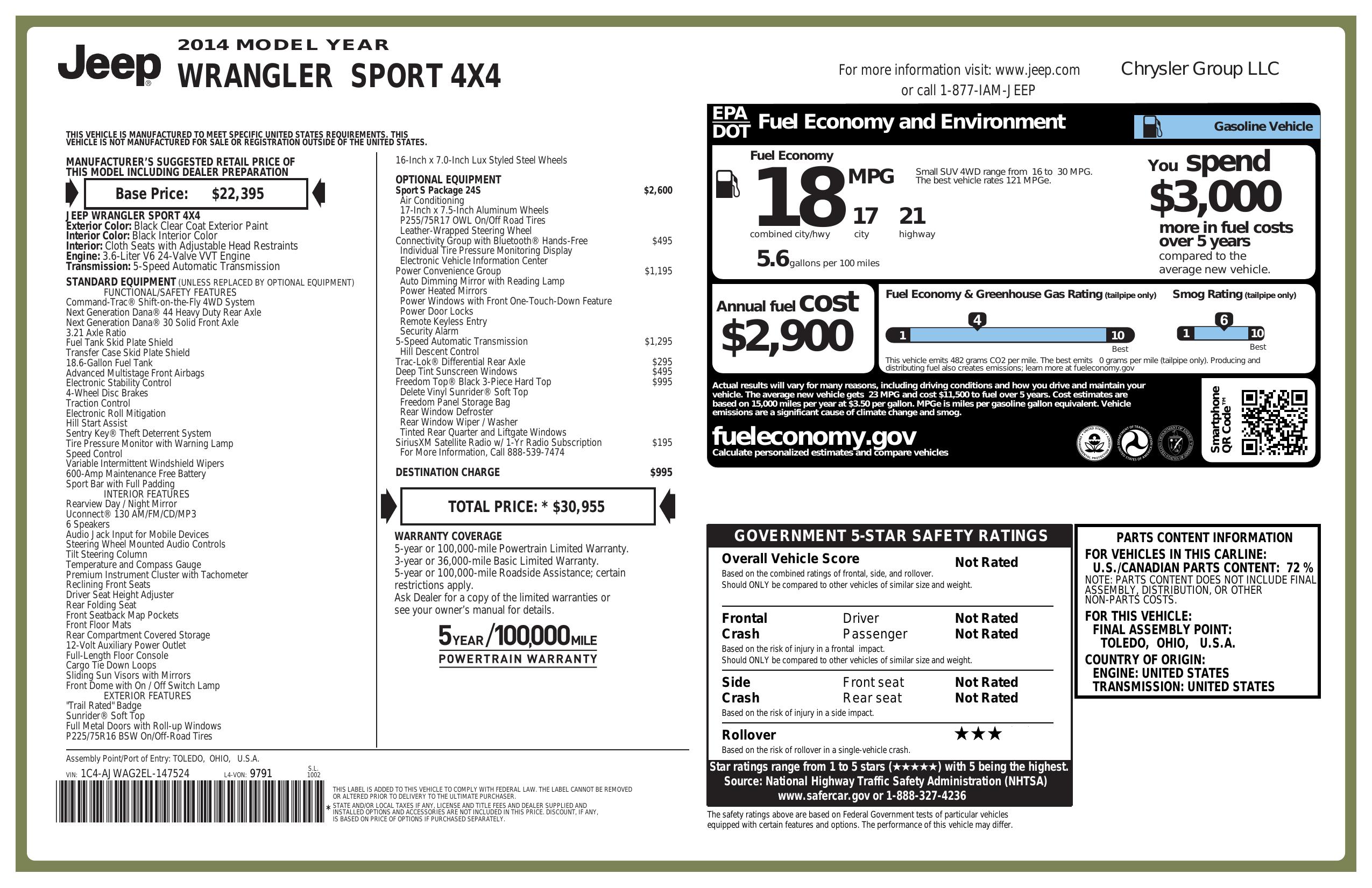 2014 Jeep Wrangler 4 Wd 2dr Sport