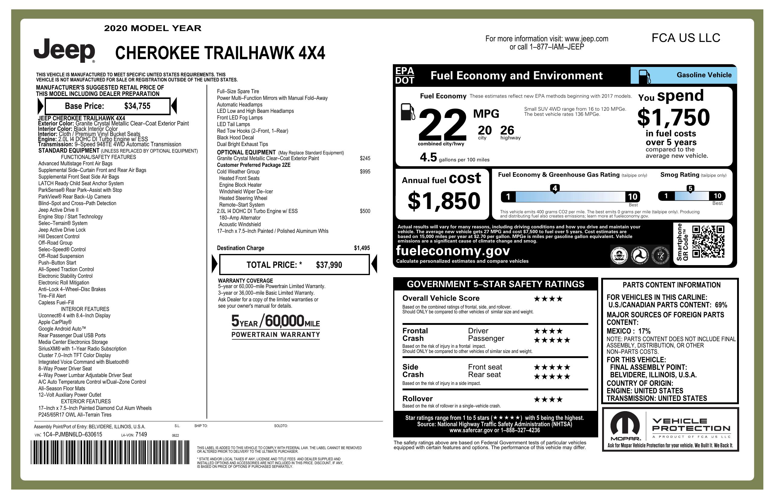 2020 Jeep Cherokee Trailhawk 4x4