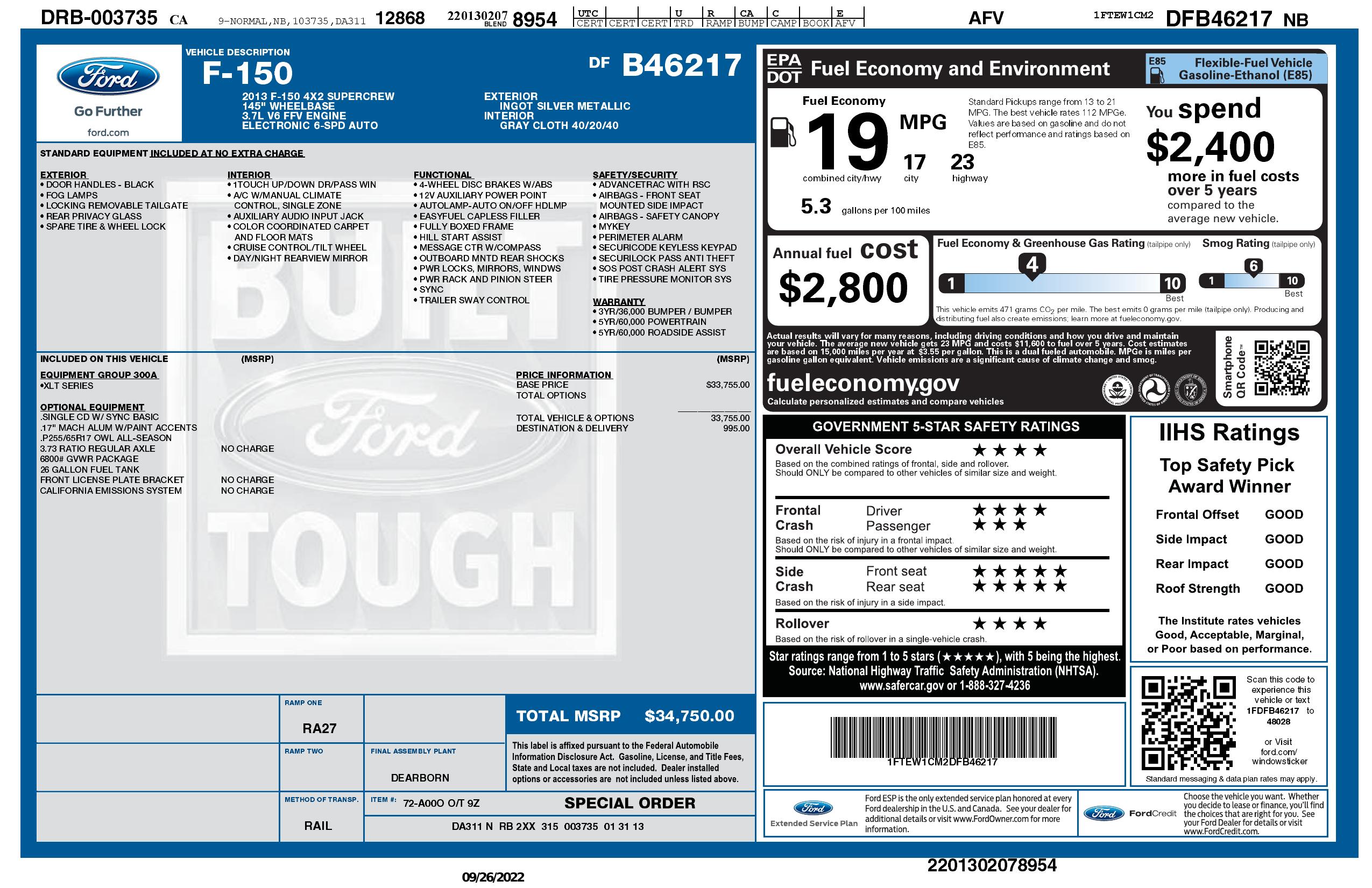 2013 Ford F 150 2 Wd Super Crew 145"