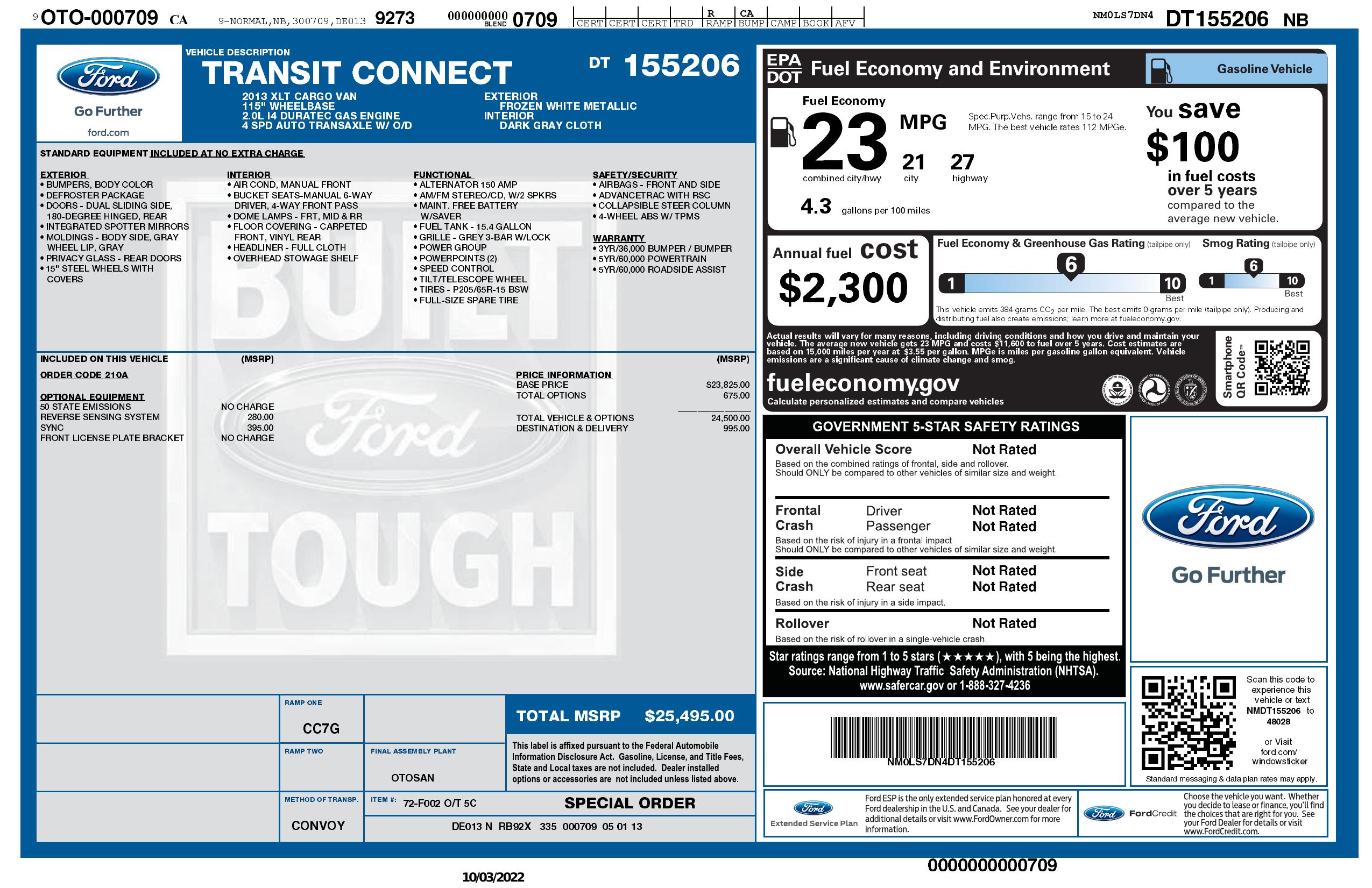 2013 Ford Transit Connect 114.6" Xlt W/Rear Door Privacy Glass