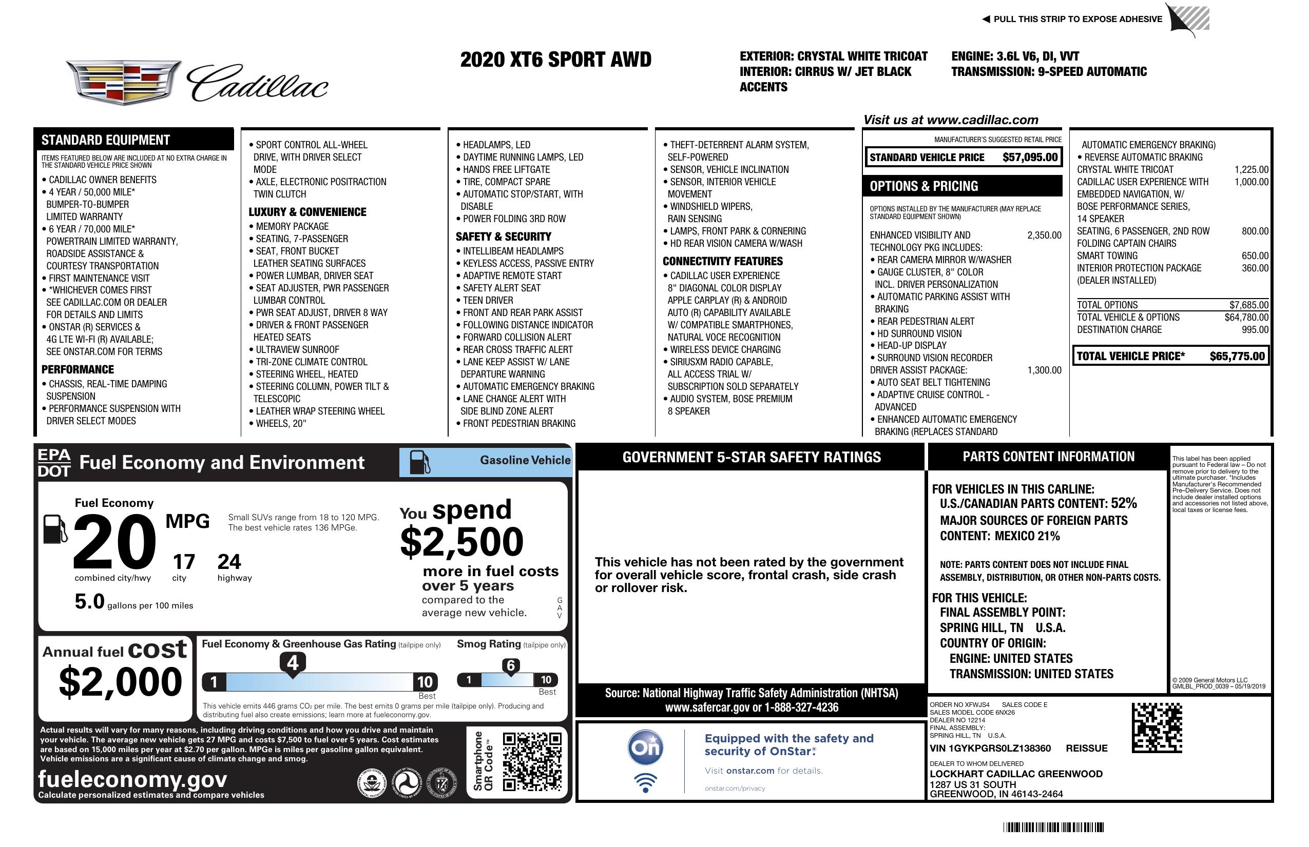 2020 Cadillac Xt6 Awd 4dr Sport