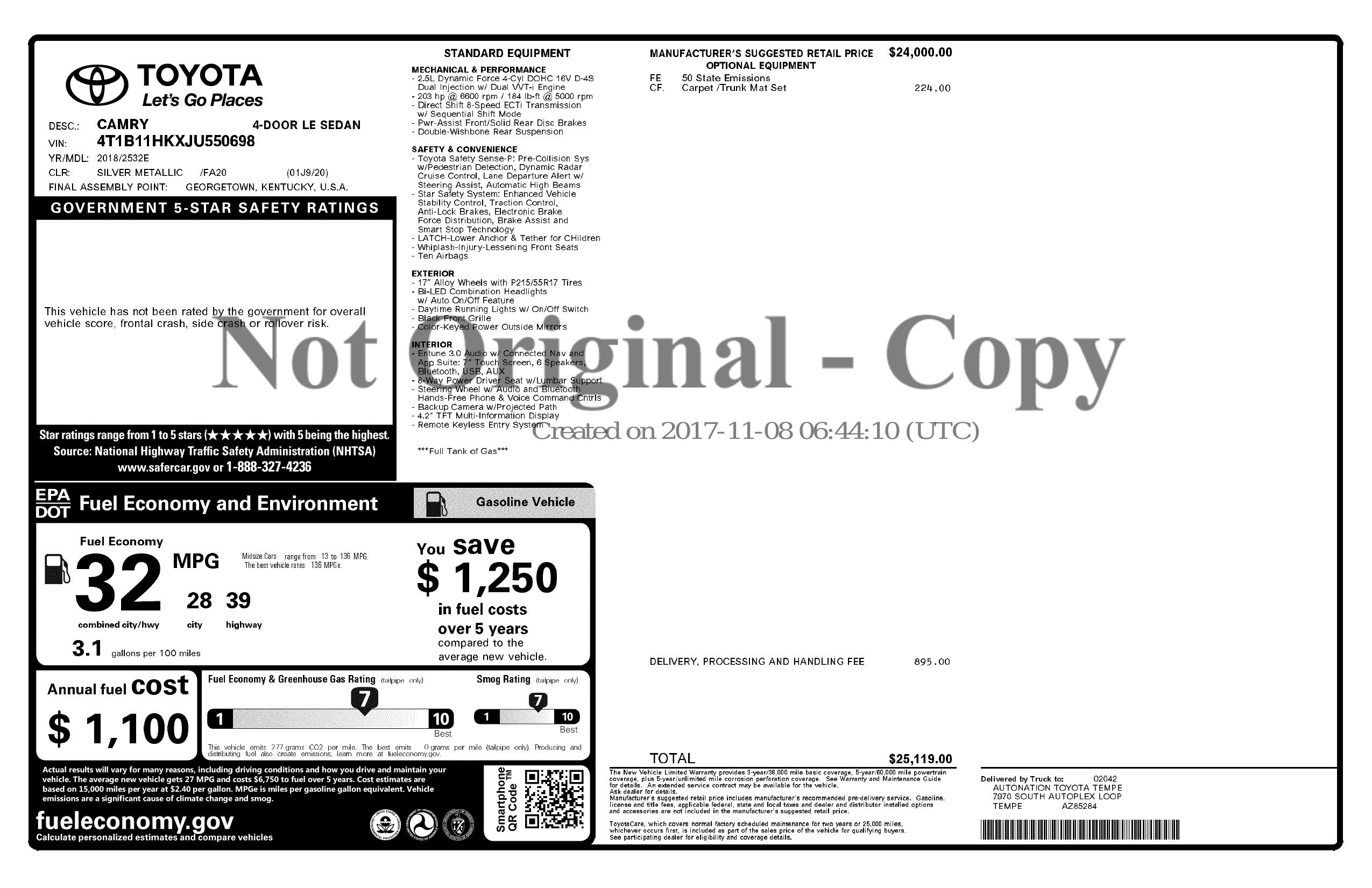 2018 Toyota Camry Auto (Natl)