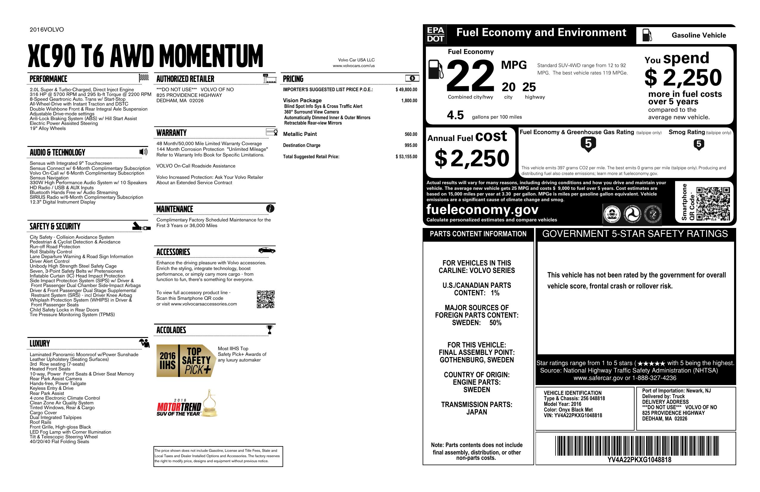 2016 Volvo Xc90 T6 Momentum