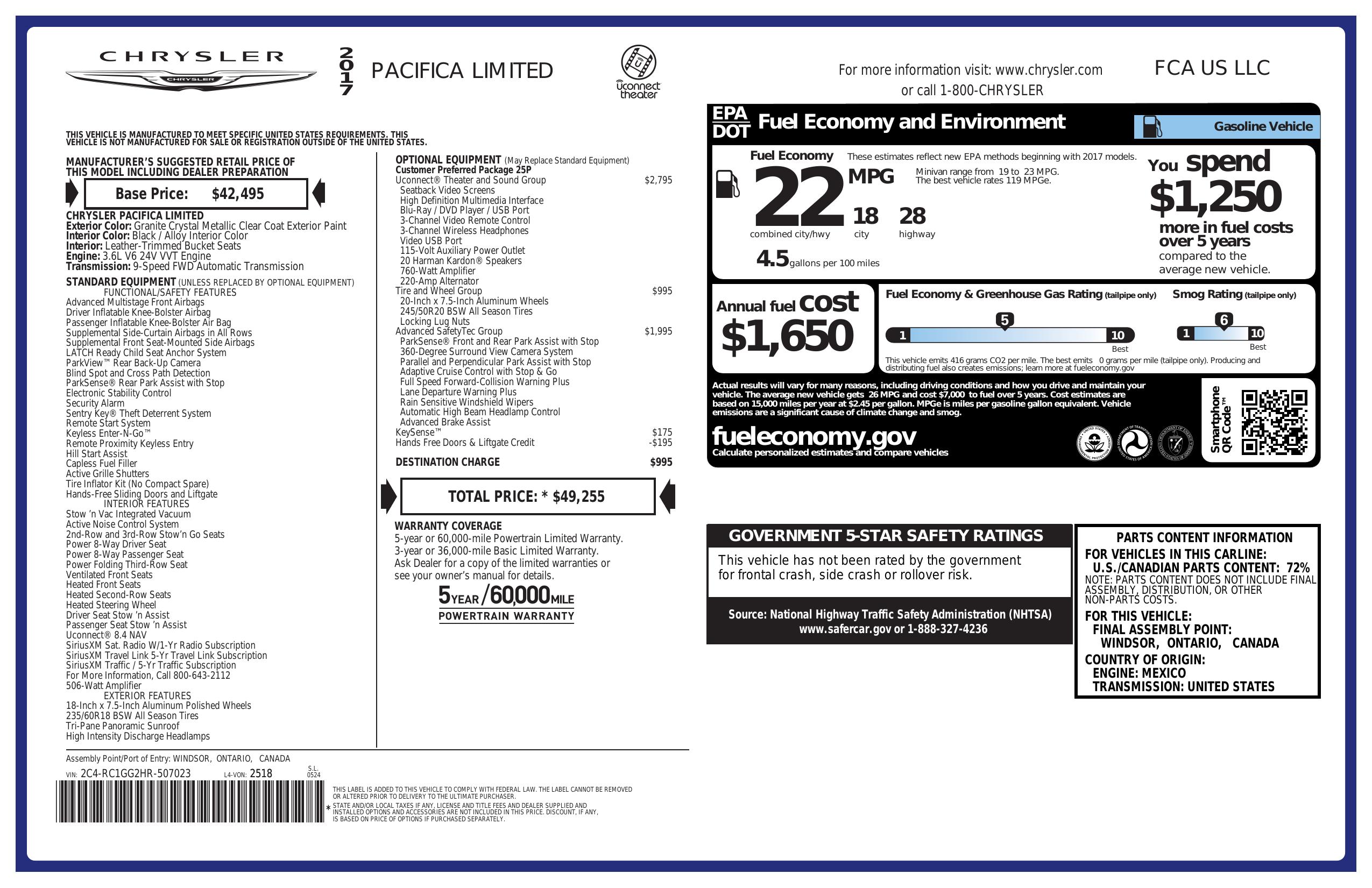 2017 Chrysler Pacifica Limited Fwd
