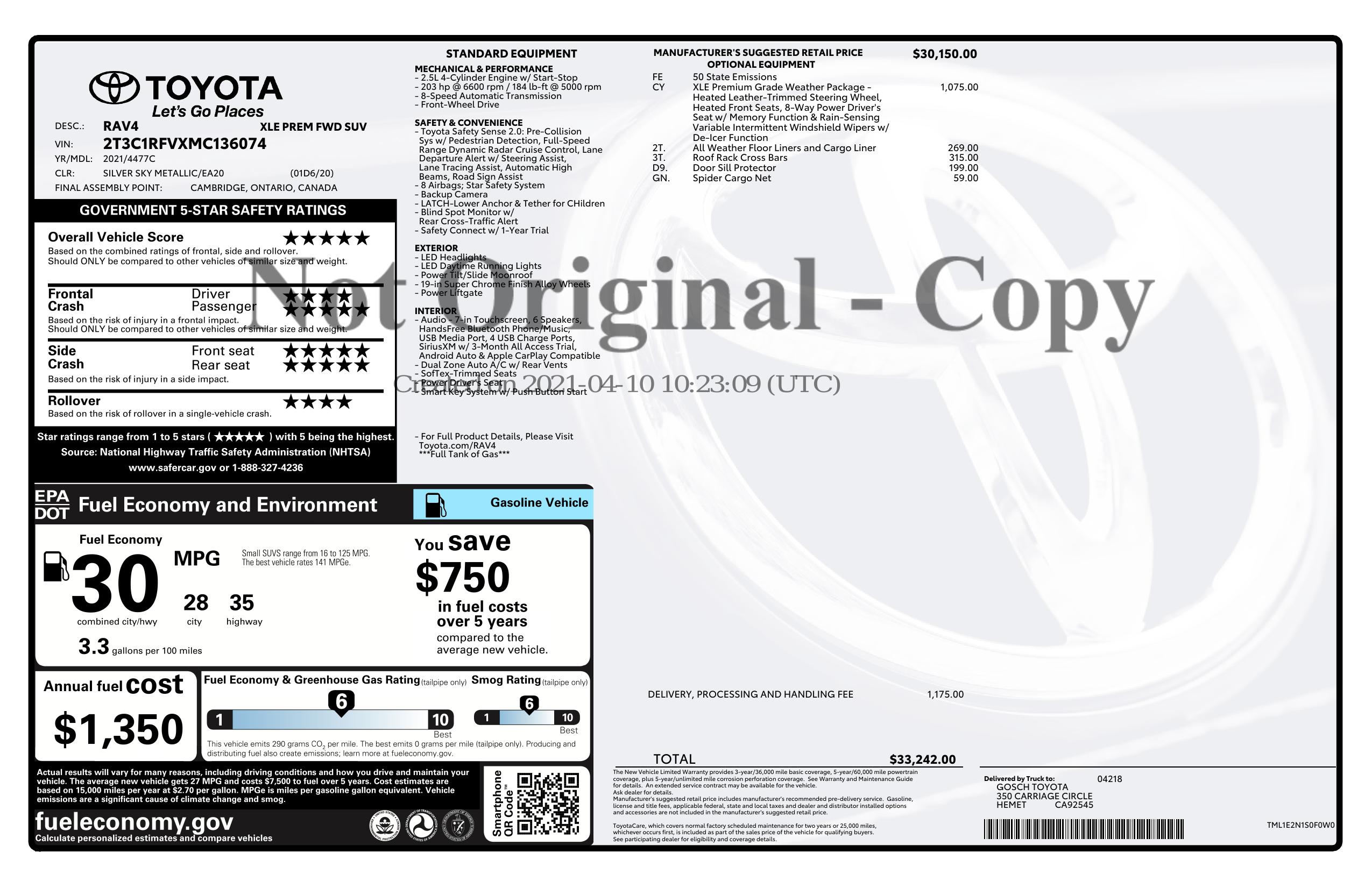 2021 Toyota Rav4 Xle Premium Fwd (Natl)