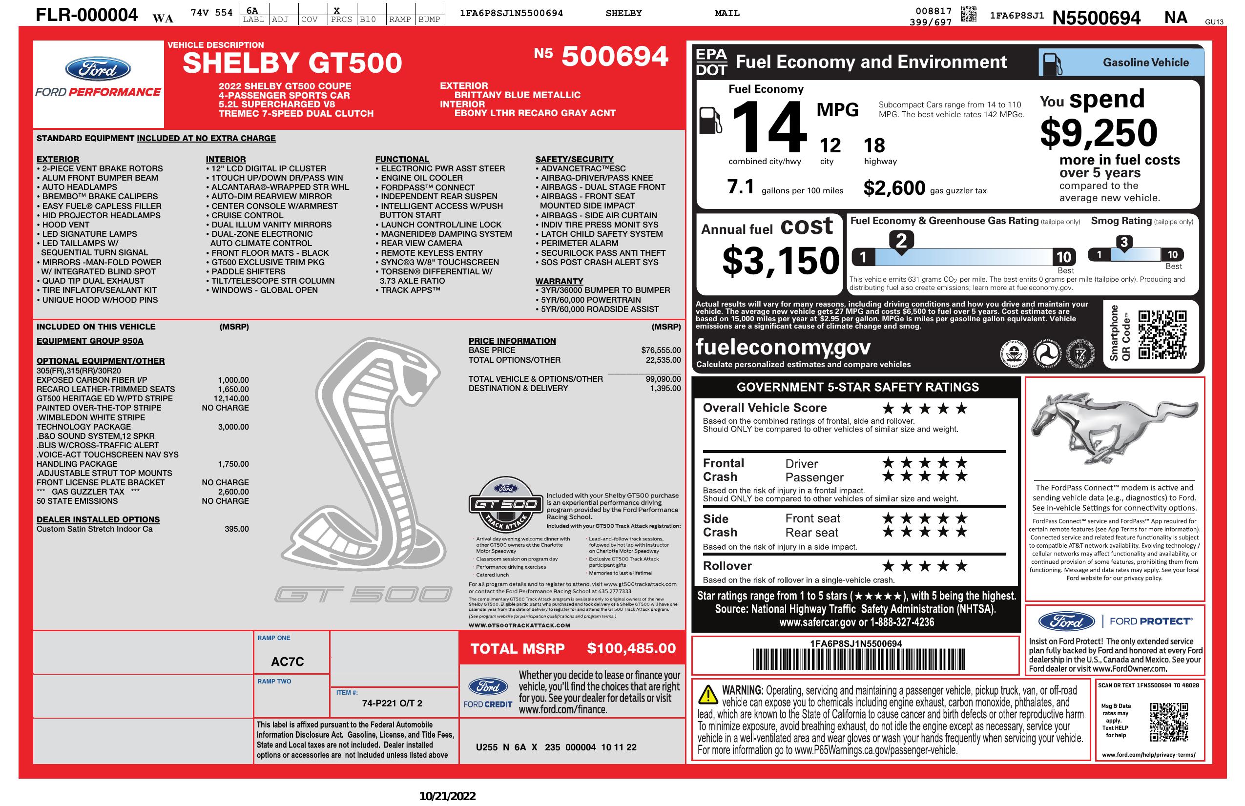 2022 Ford Mustang Shelby Gt500 Fastback