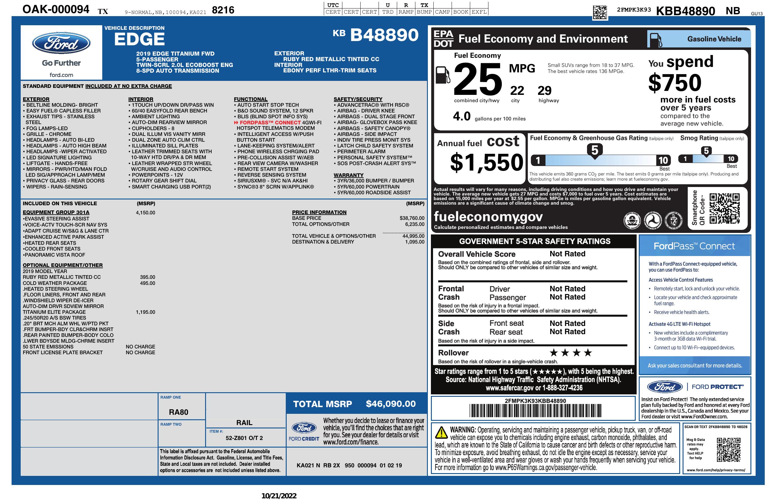 2019 Ford Edge Titanium Fwd