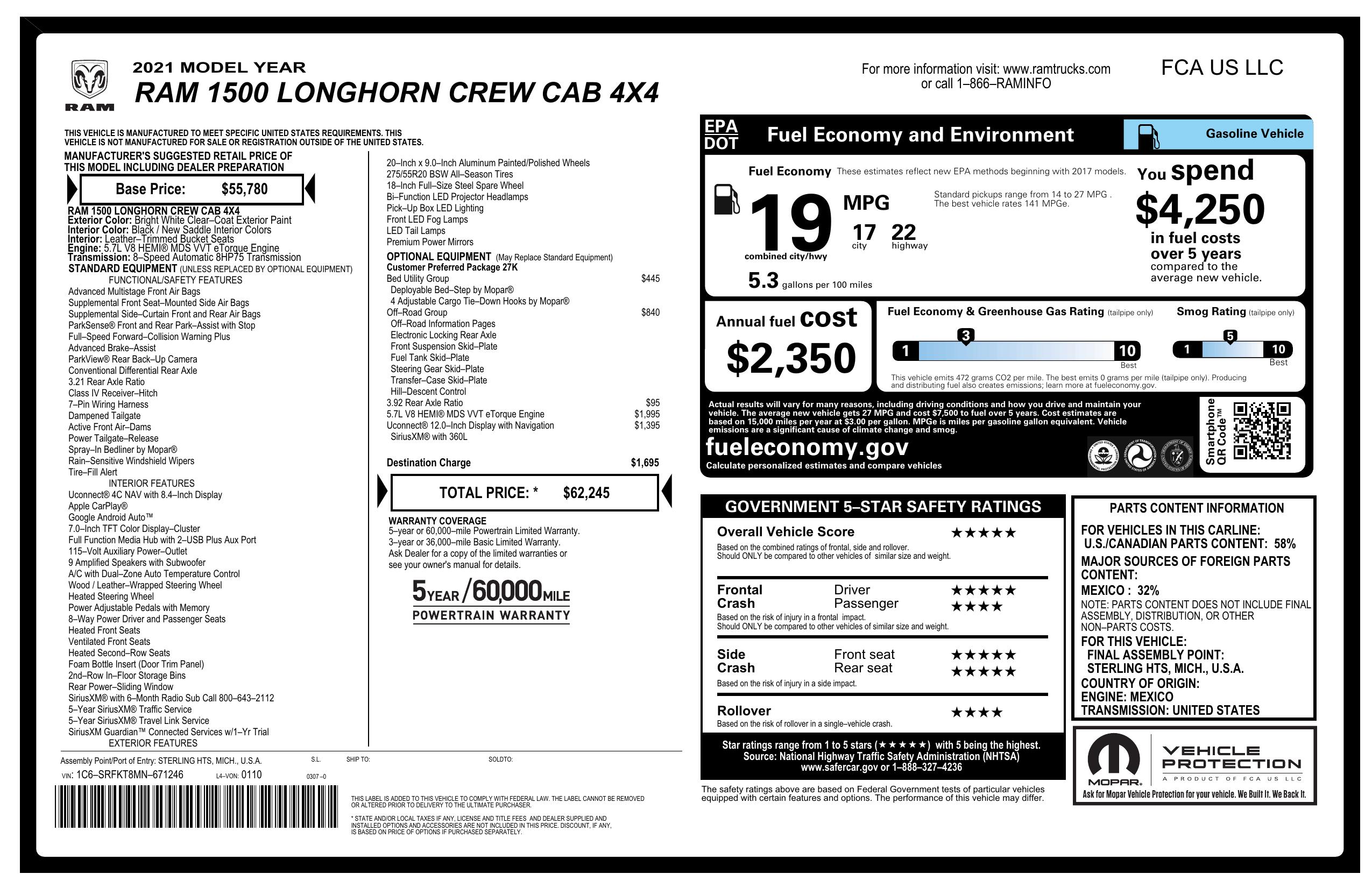 2021 Ram 1500 Longhorn 4x4 Crew Cab 5'7" Box