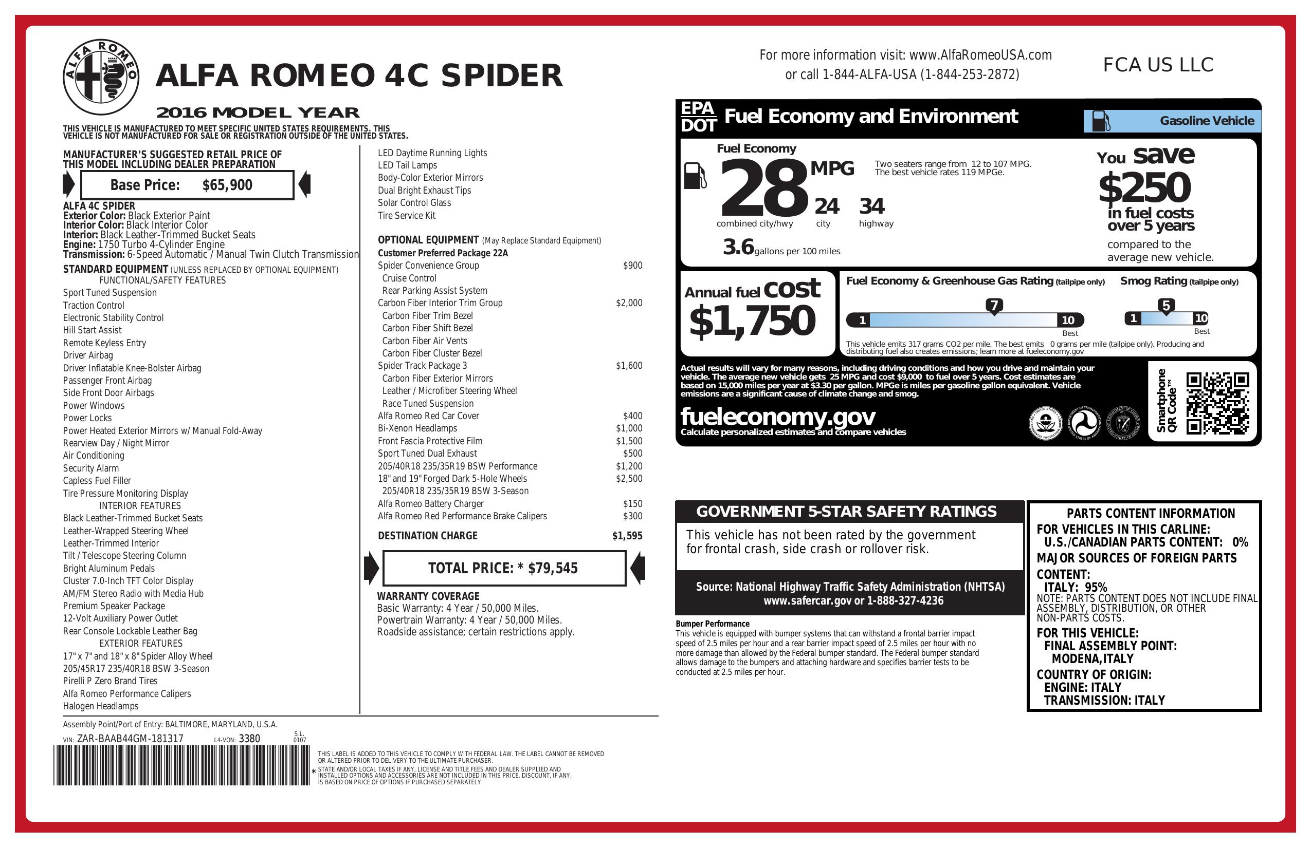 2016 Alfa Romeo 4 C 2dr Conv Spider