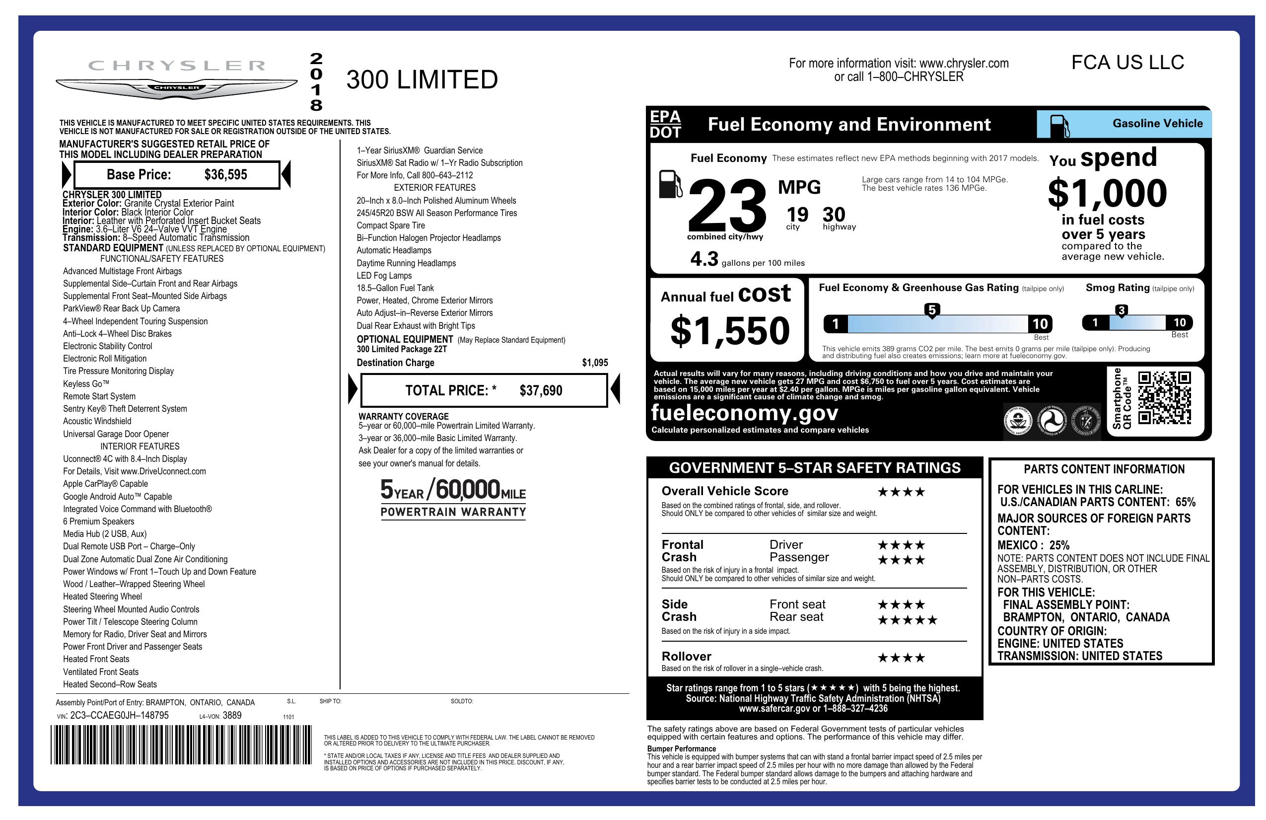 2018 Chrysler 300 Limited Rwd
