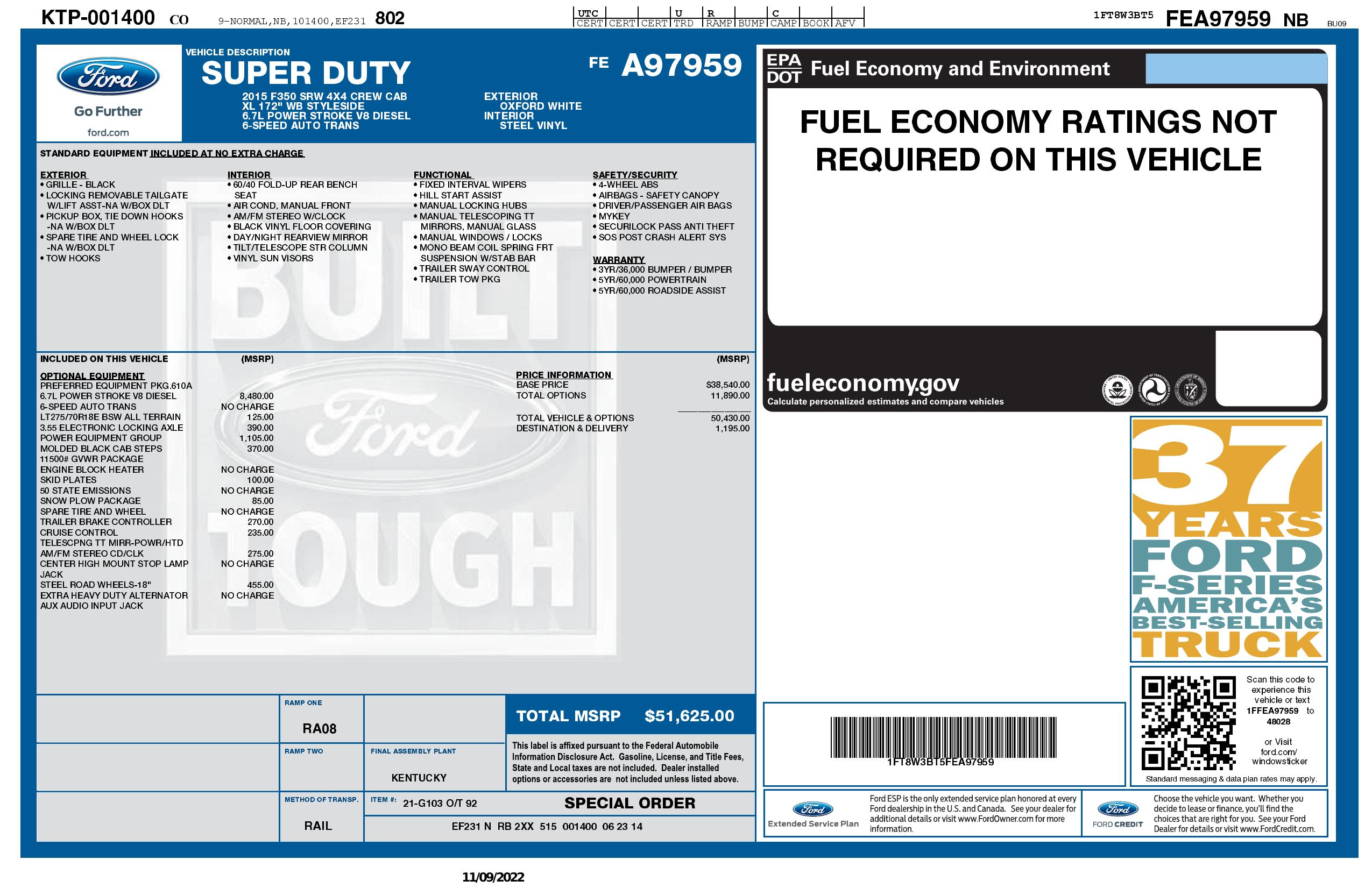 2015 Ford Super Duty F 350 Srw 4 Wd Crew Cab