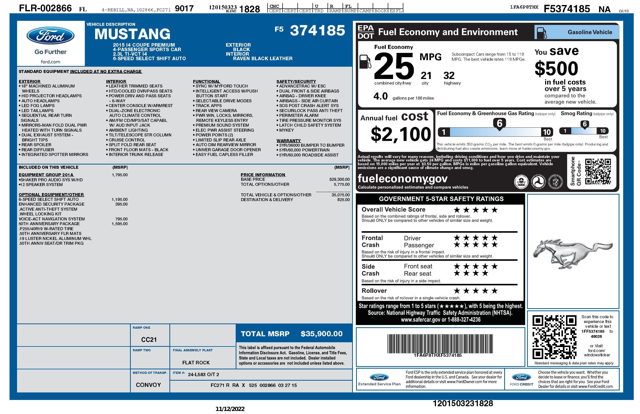 2015 Ford Mustang 2dr Fastback Eco Boost