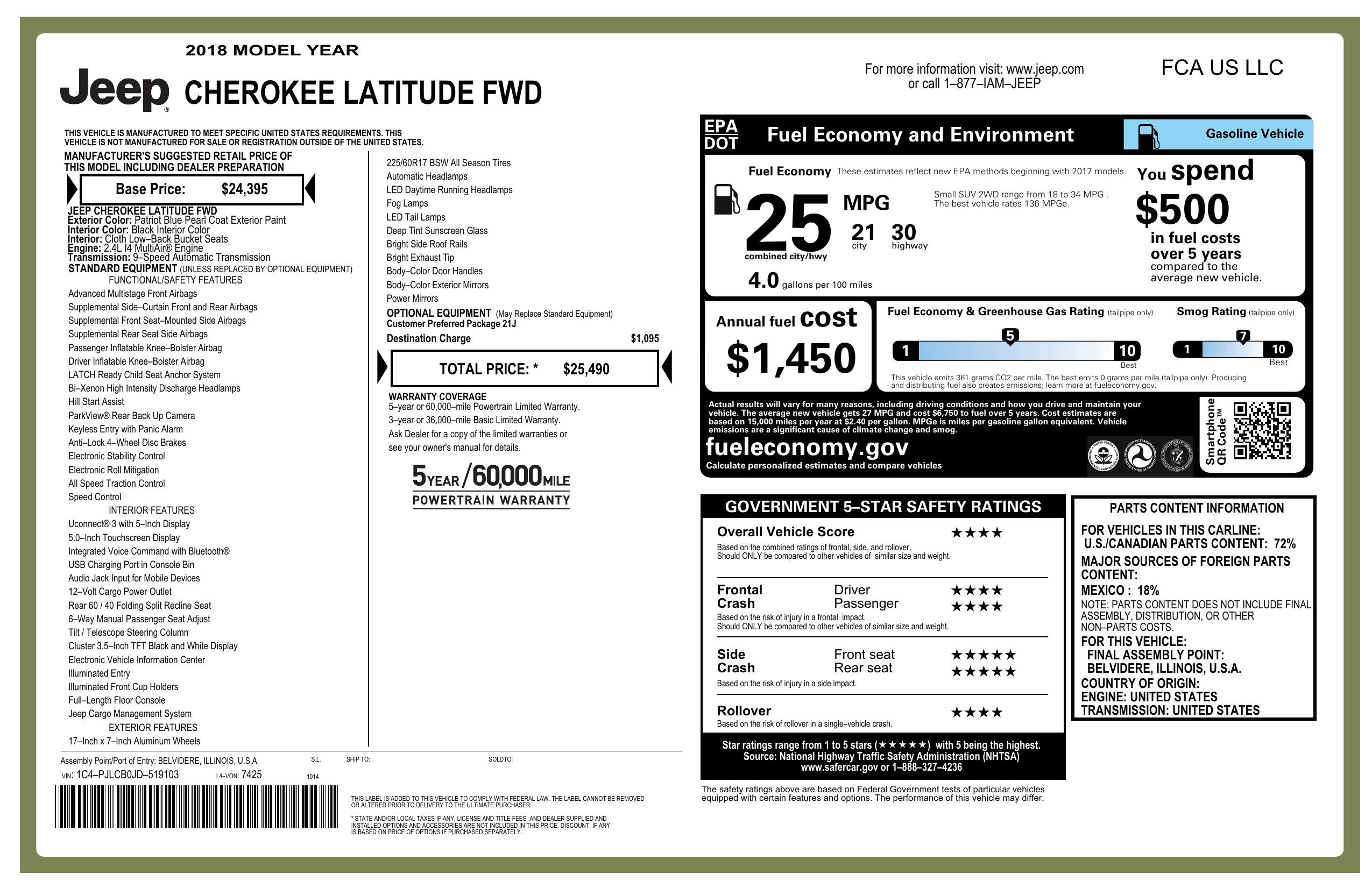 2018 Jeep Cherokee Latitude Fwd