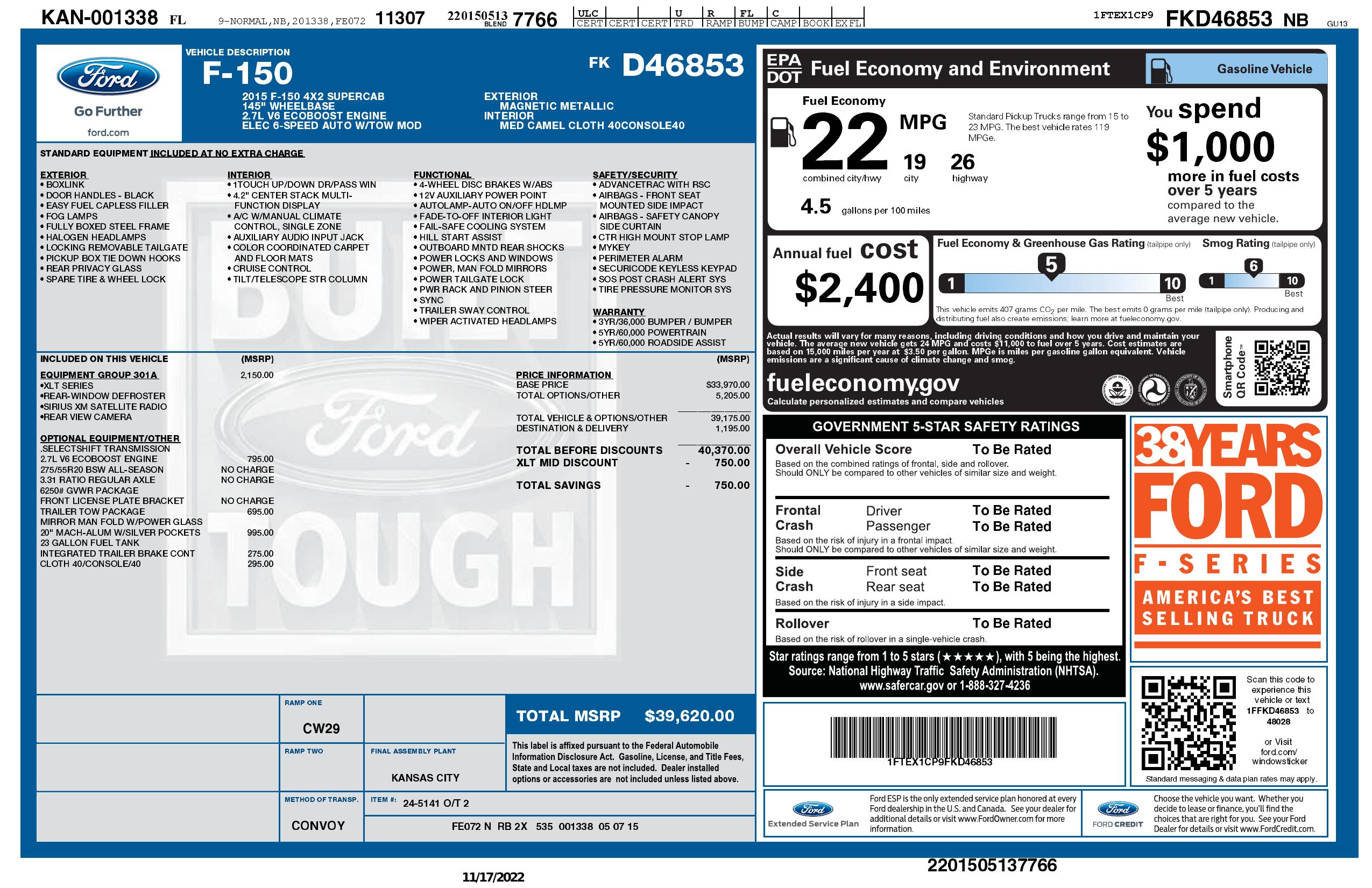 2015 Ford F 150 2 Wd Super Cab