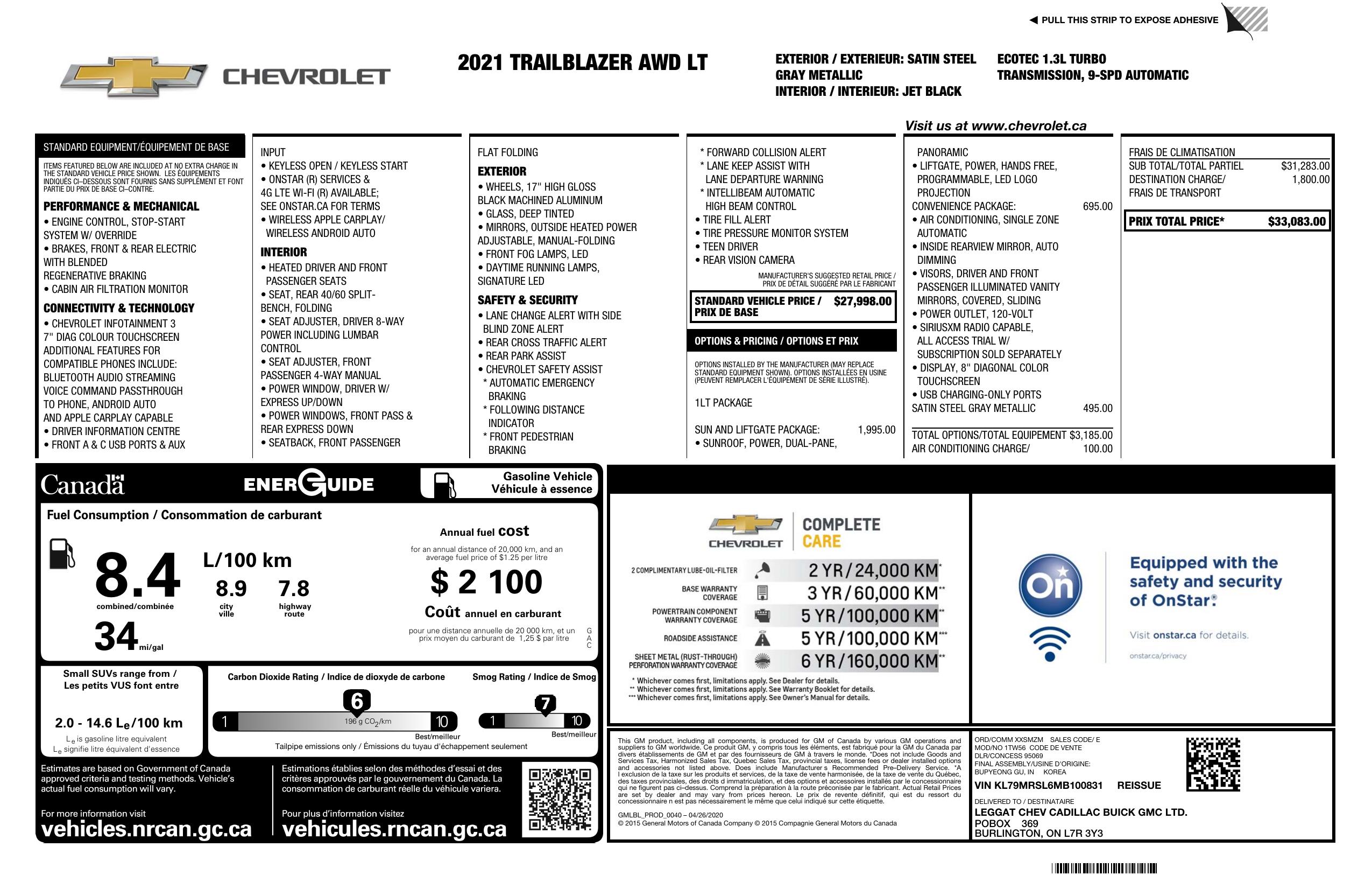 2021 Chevrolet Trailblazer Awd 4dr Lt