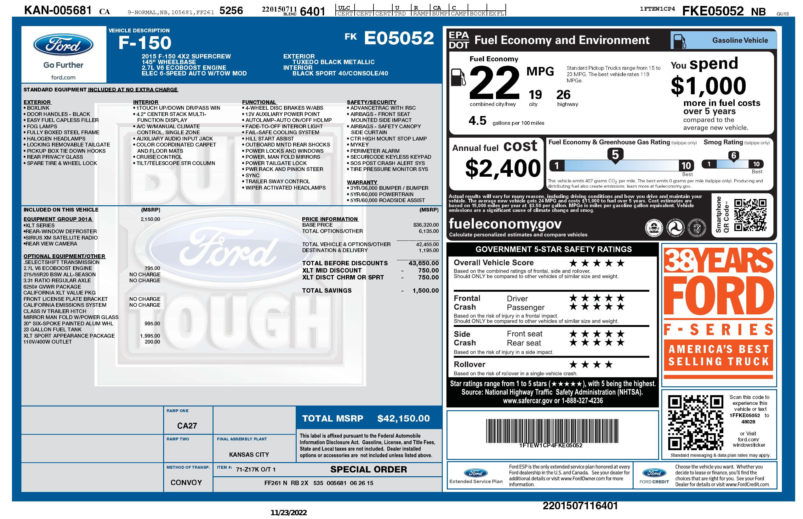 2015 Ford F 150 2 Wd Super Crew
