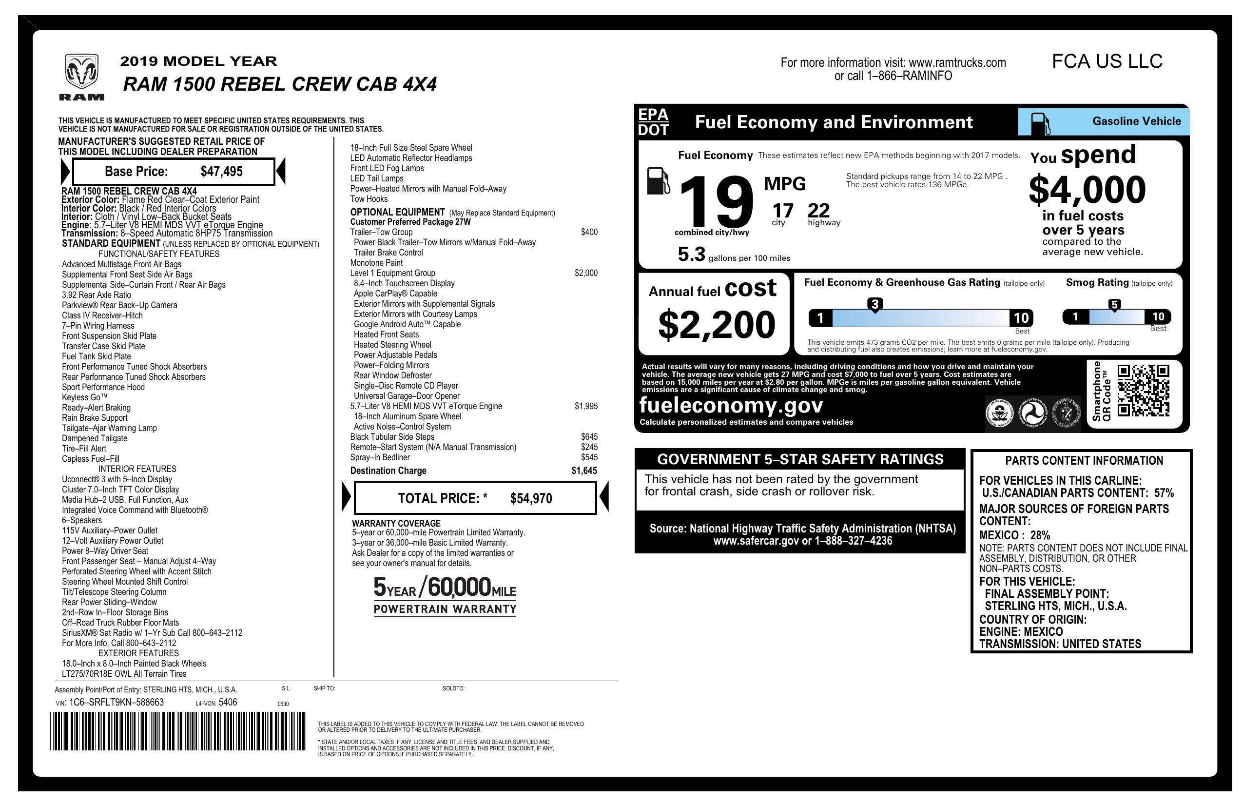 2019 Ram 1500 Rebel 4x4 Crew Cab 5'7" Box