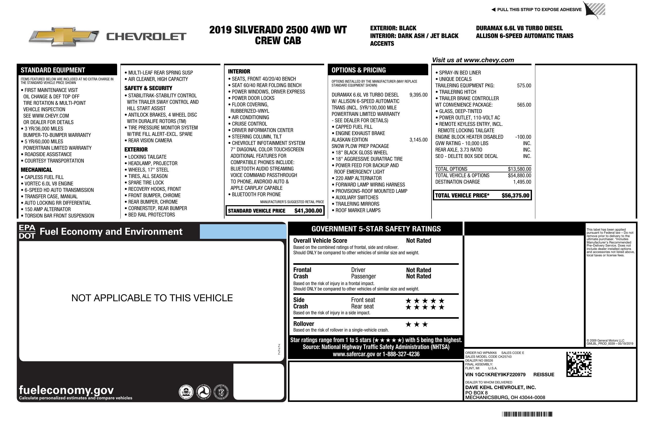 2019 Chevrolet Silverado 2500 Hd 4 Wd Crew Cab 153.7" Work Truck
