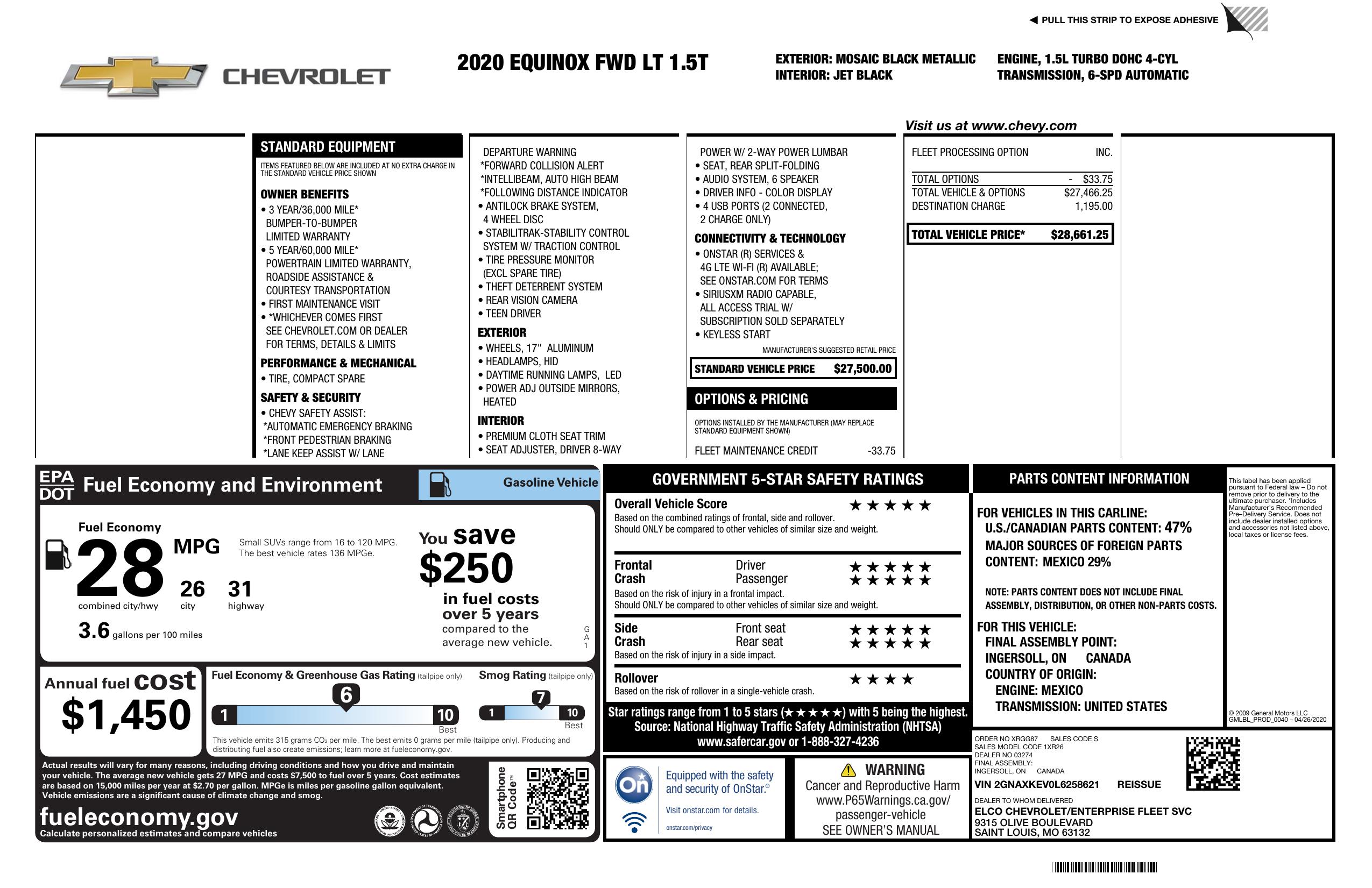 2020 Chevrolet Equinox Fwd 4dr Lt W/1 Lt