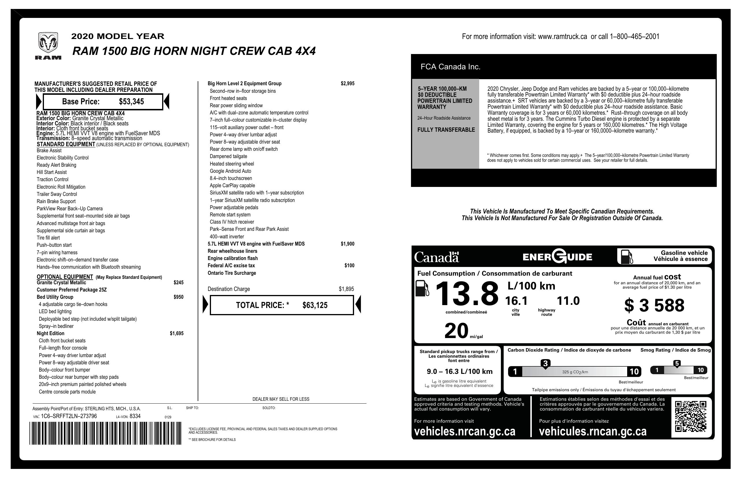 2020 Ram 1500 Big Horn 4x4 Crew Cab 5'7" Box