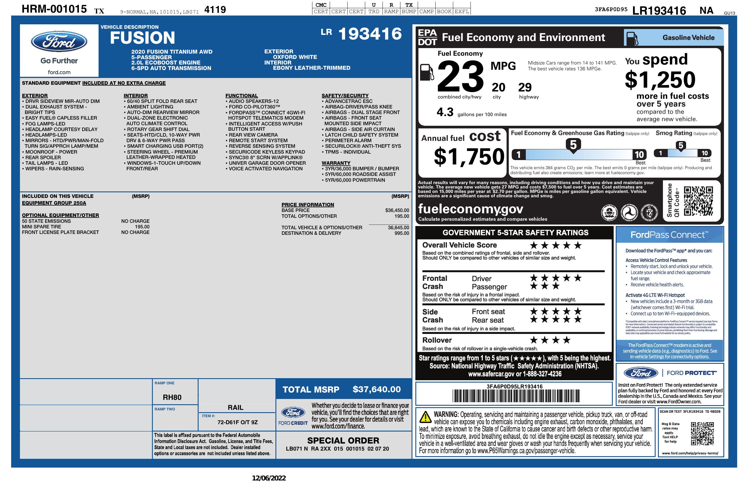 2020 Ford Fusion Titanium Awd
