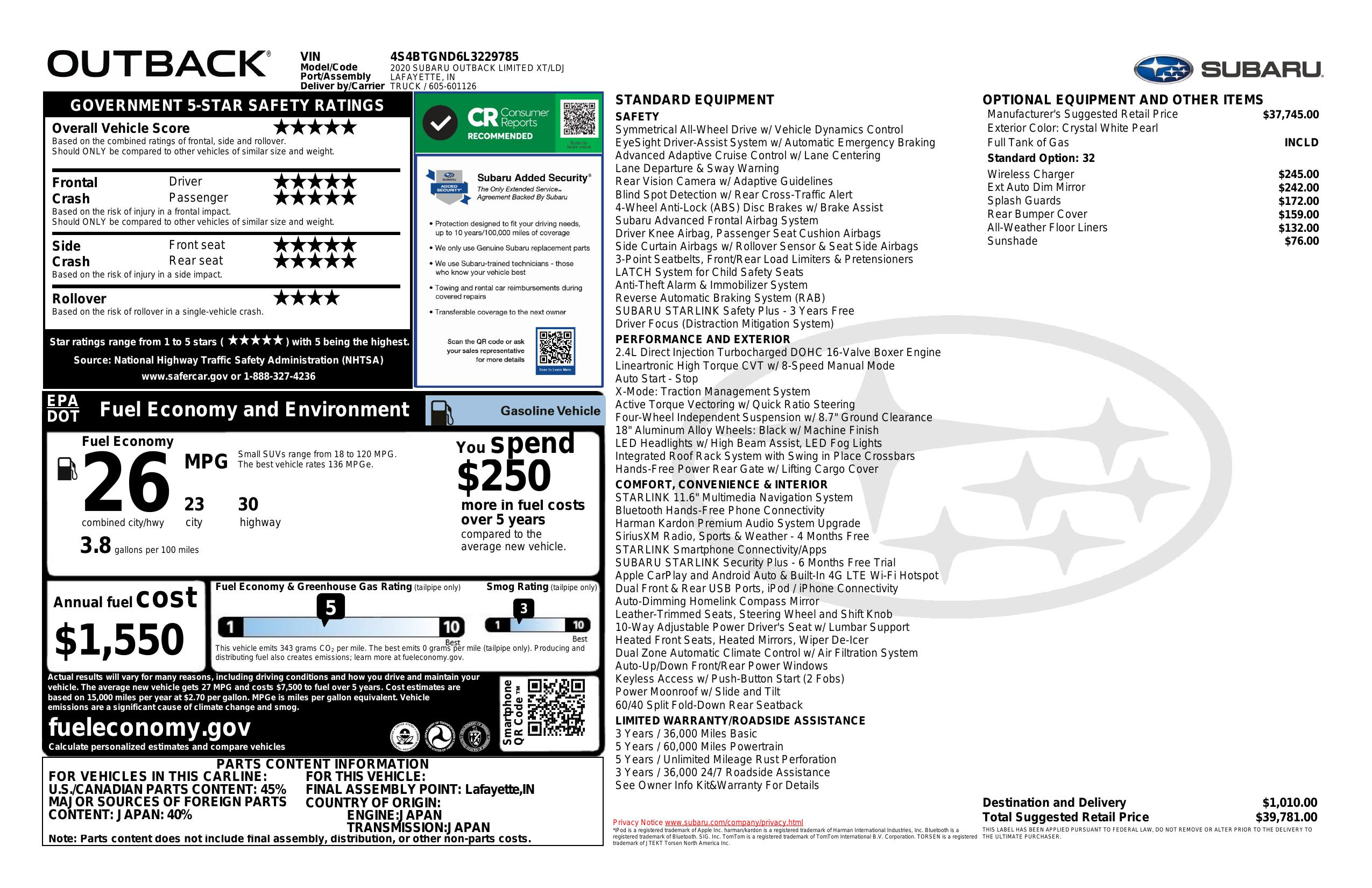 2020 Subaru Outback Limited Xt