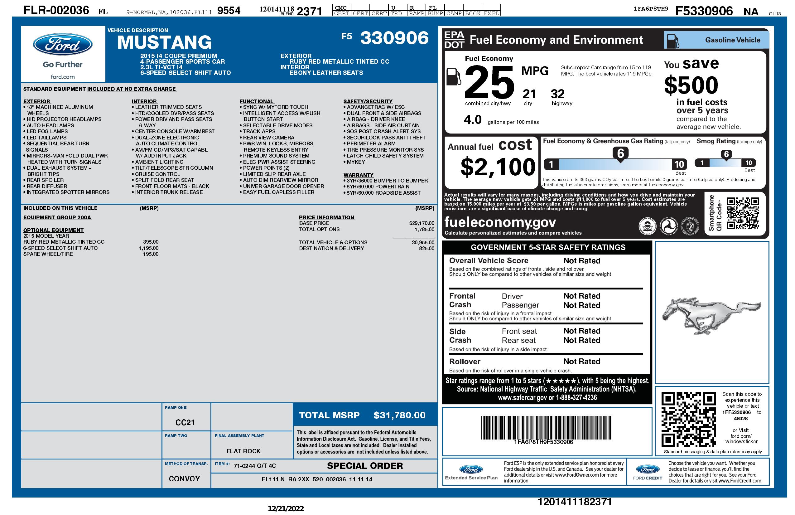 2015 Ford Mustang 2dr Fastback Eco Boost