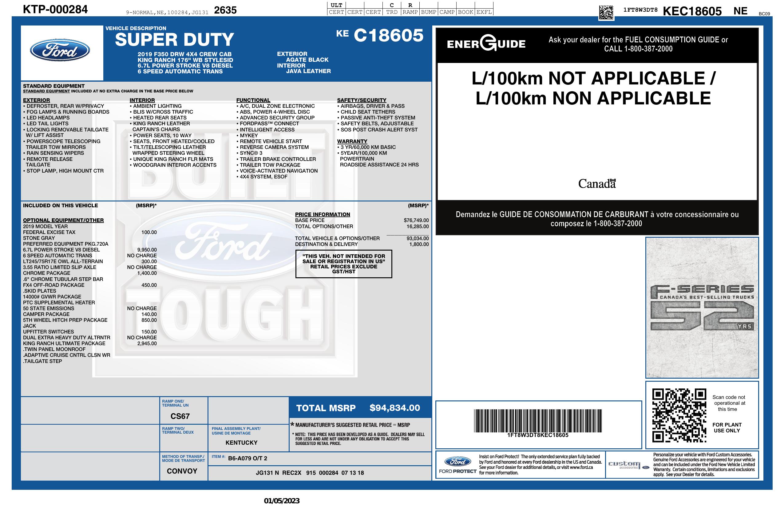2019 Ford Super Duty F 350 Drw 4 Wd Crew Cab 8' Box