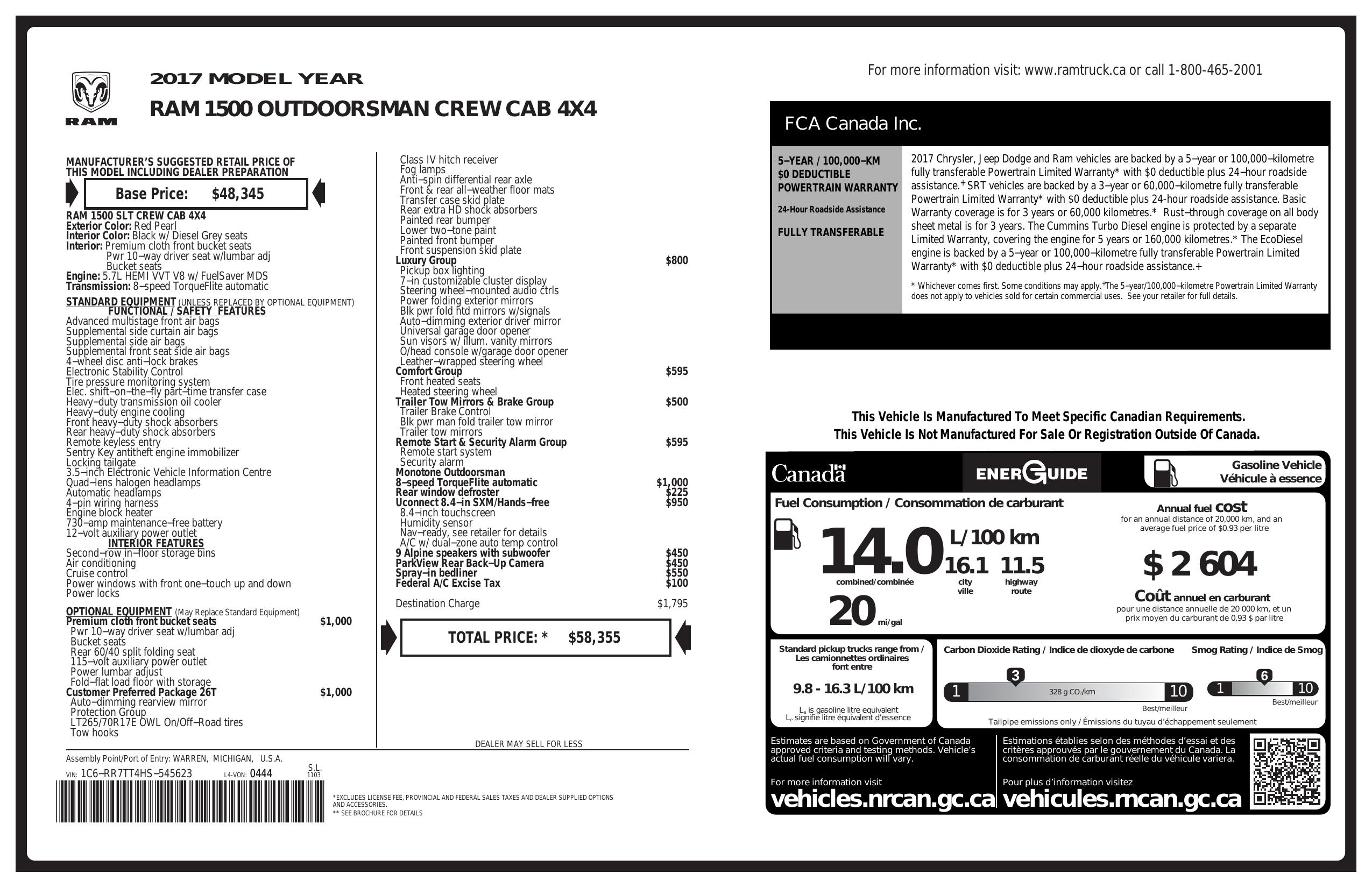 2017 Ram 1500 4 Wd Crew Cab 149" Outdoorsman