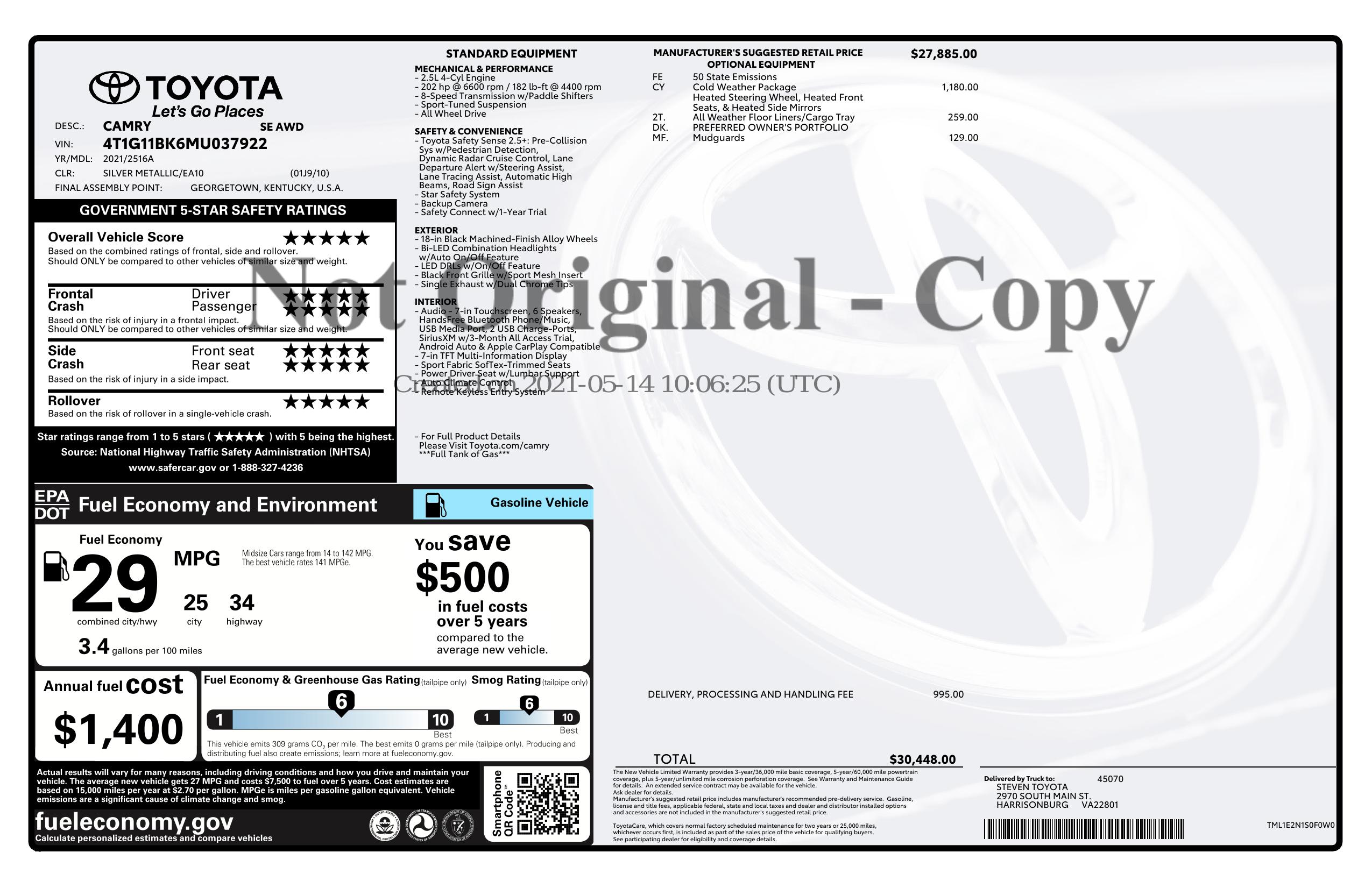 2021 Toyota Camry Se With Cold Weather Package